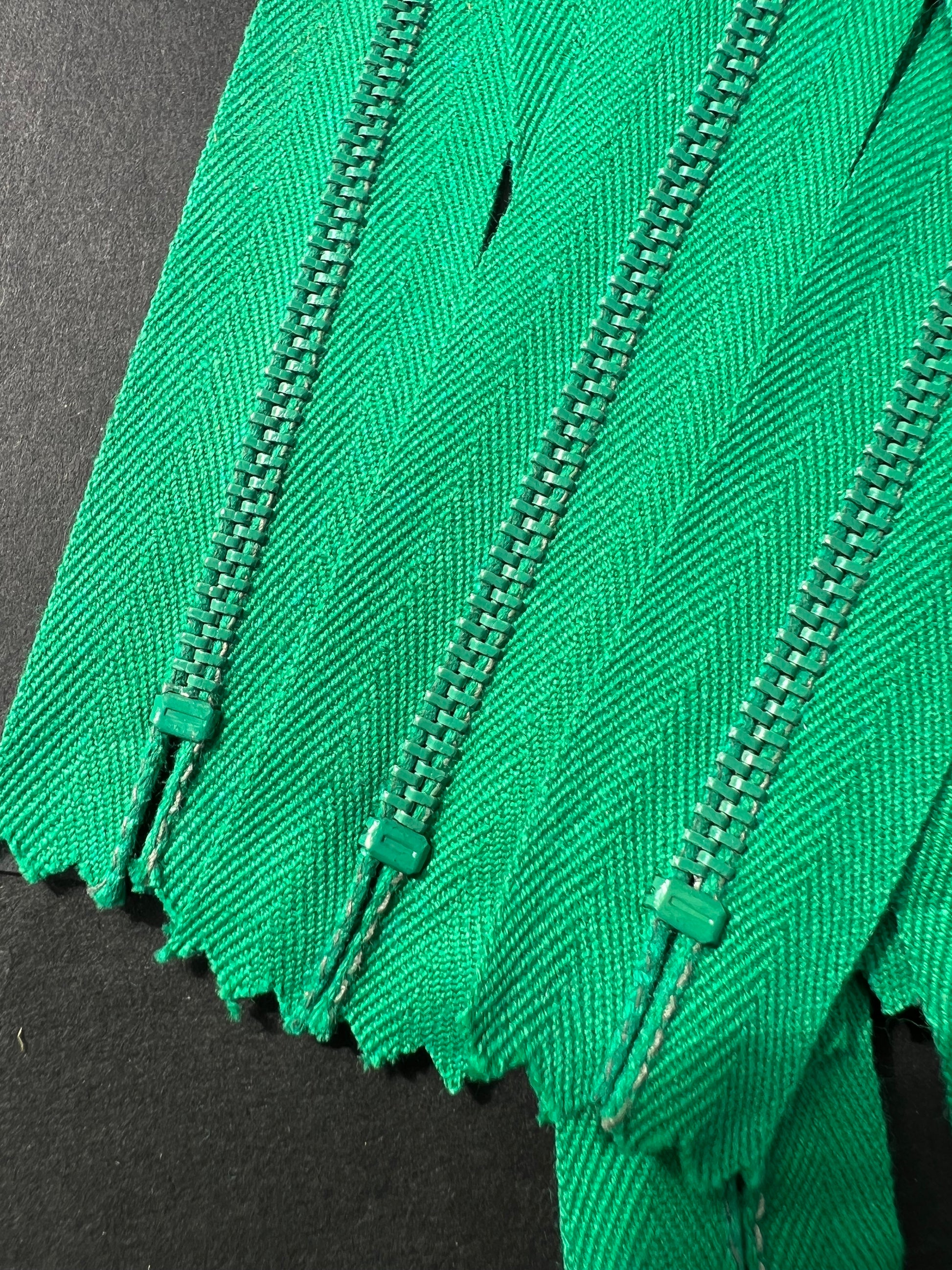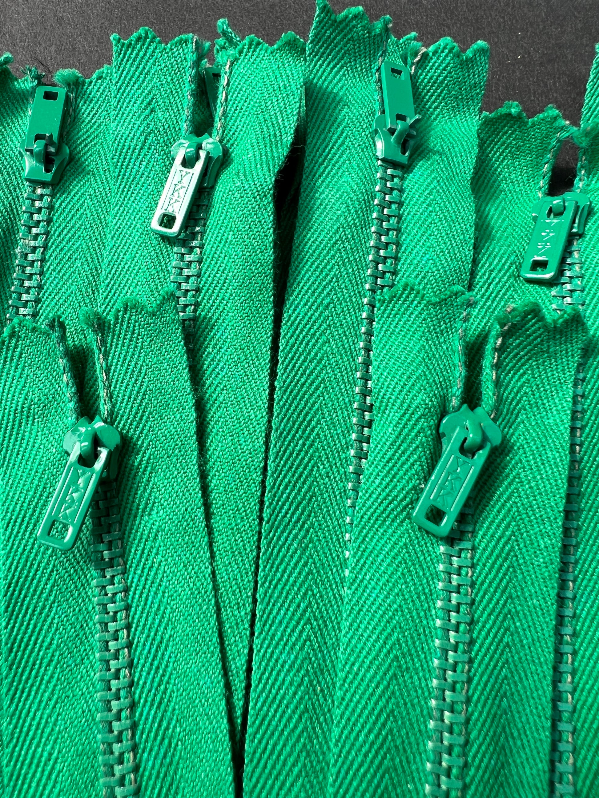 10 Vintage 10" Bright Green Y.K.K zips.