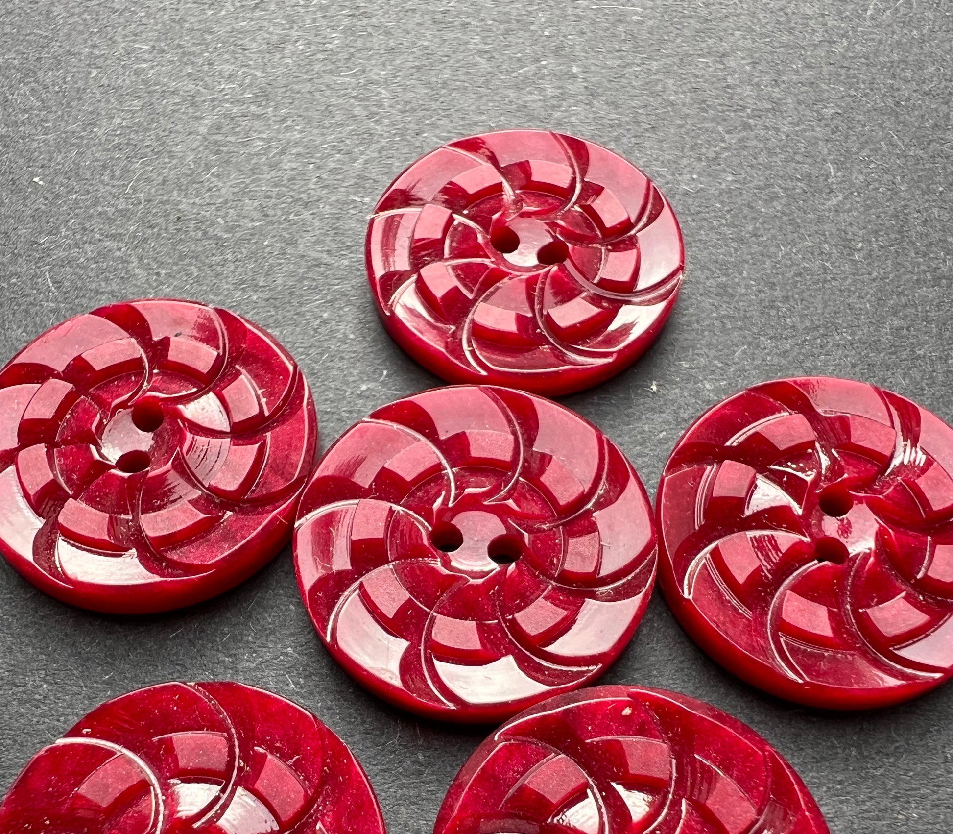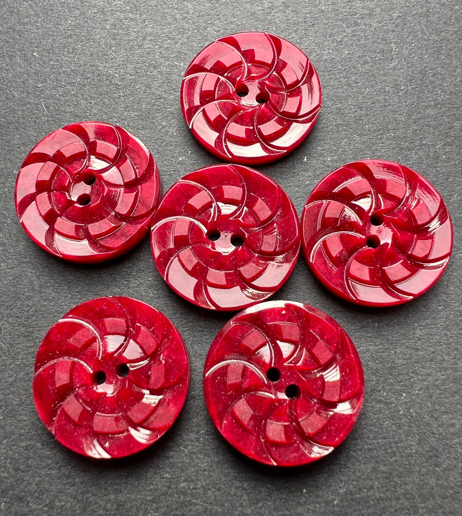 6 Dynamic Vintage Ruby Red 1.7cm Buttons