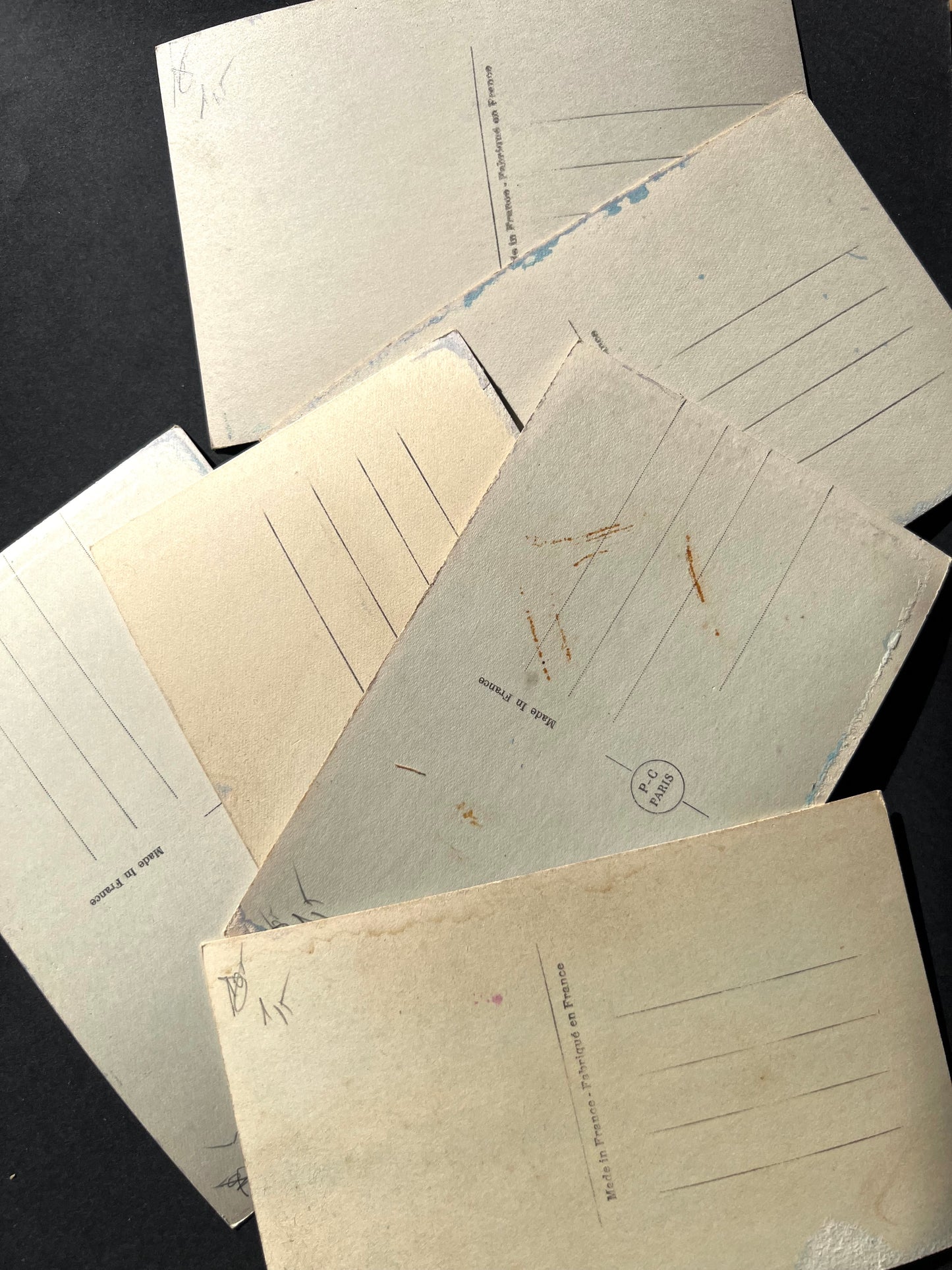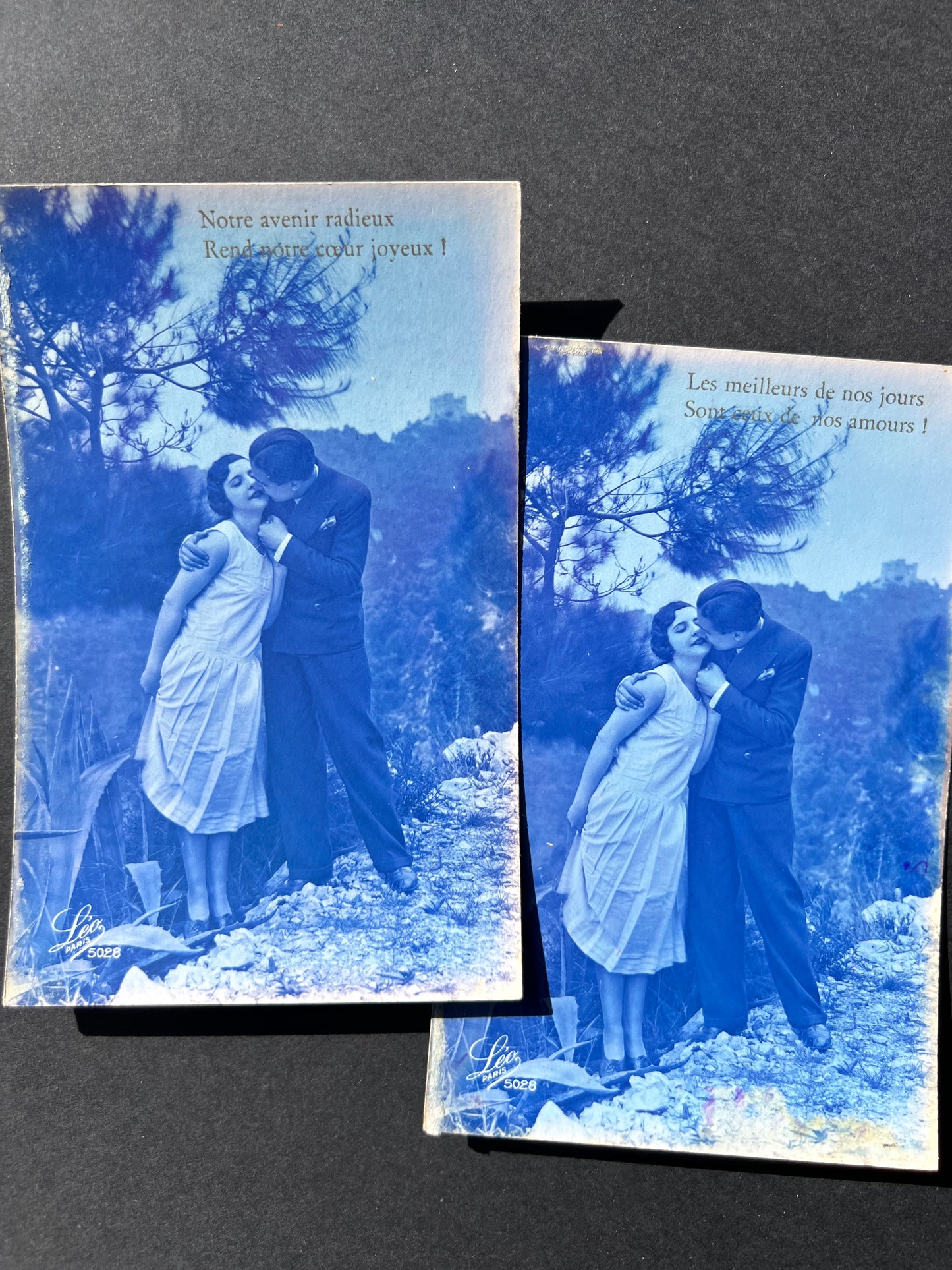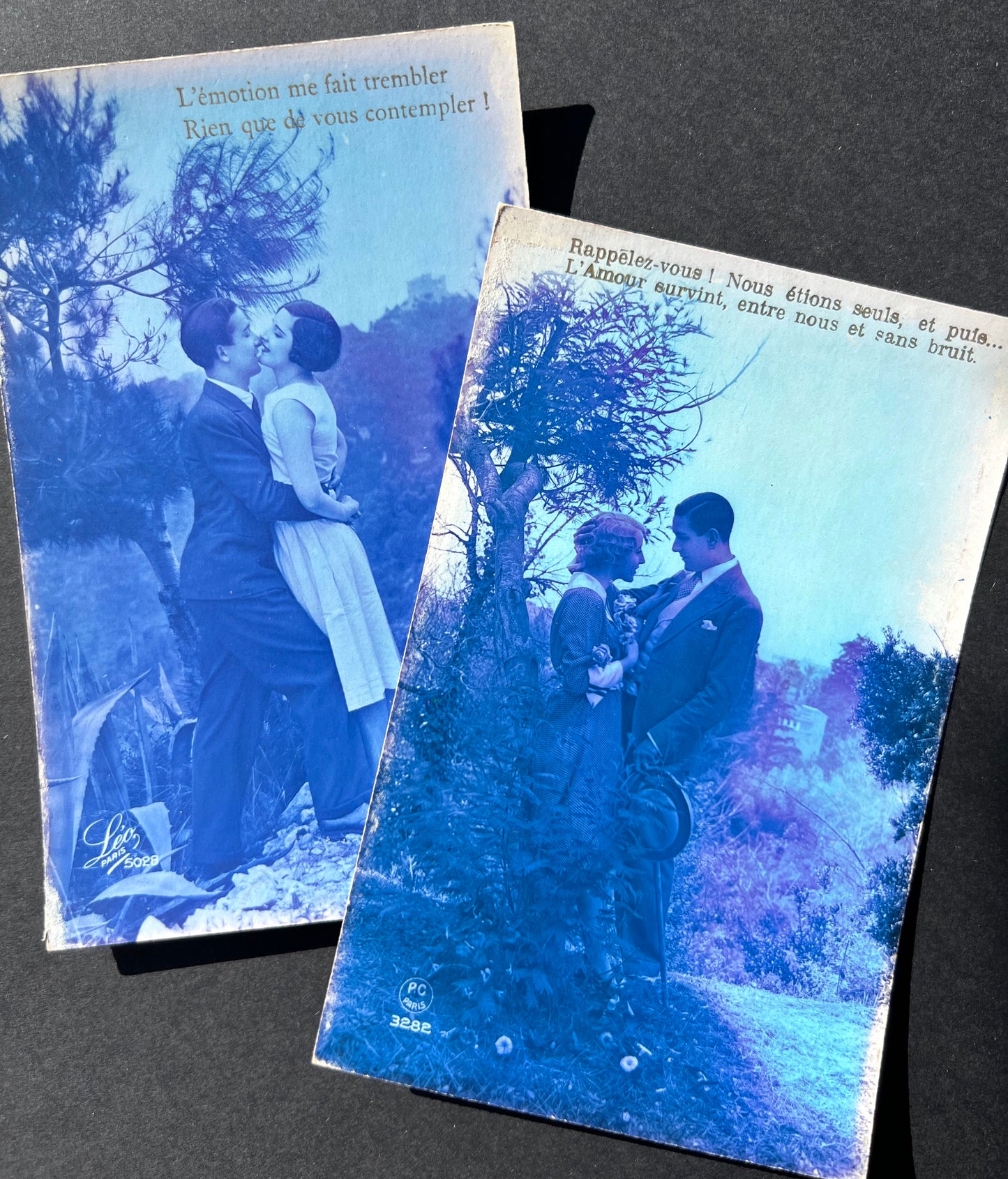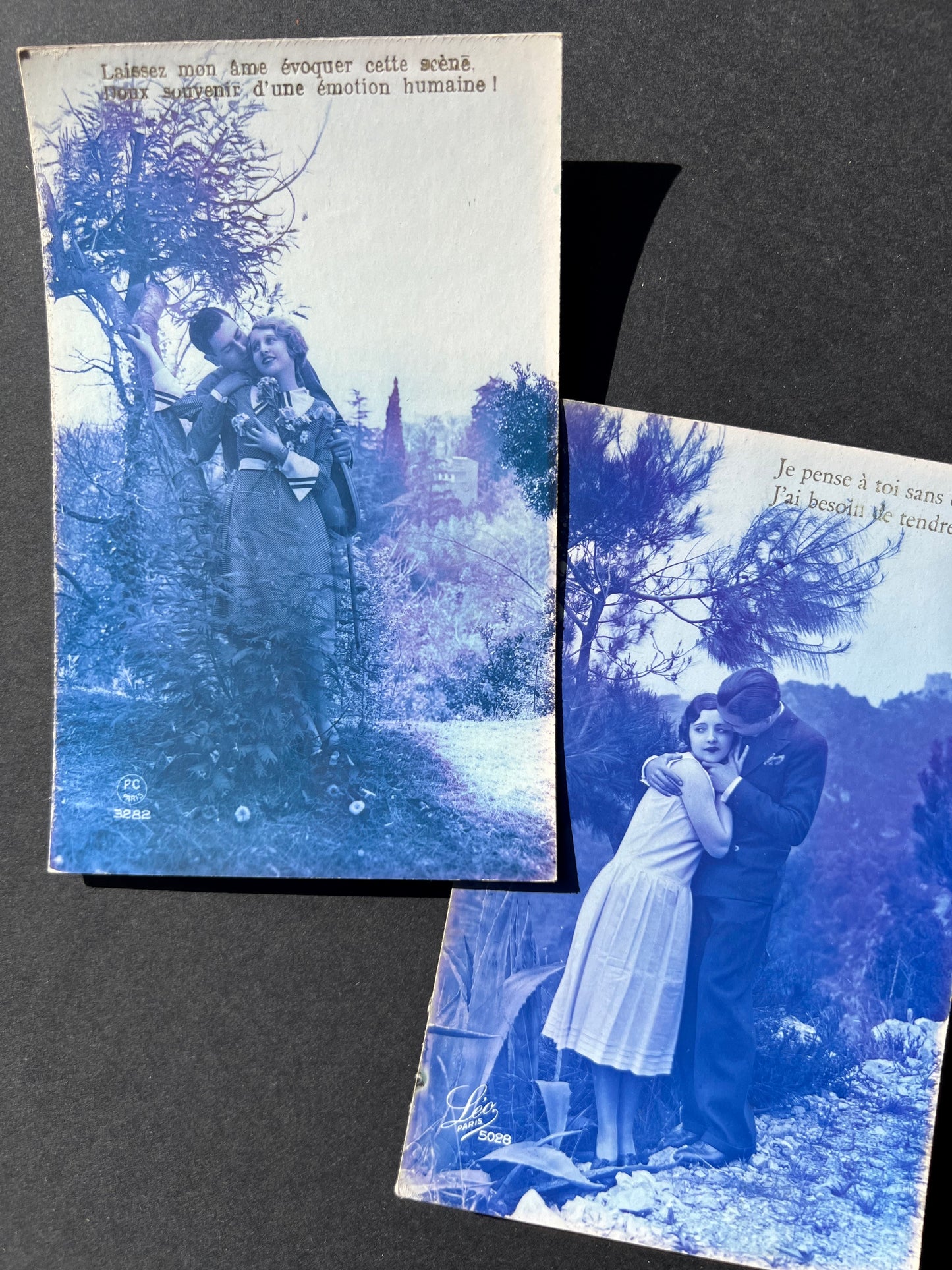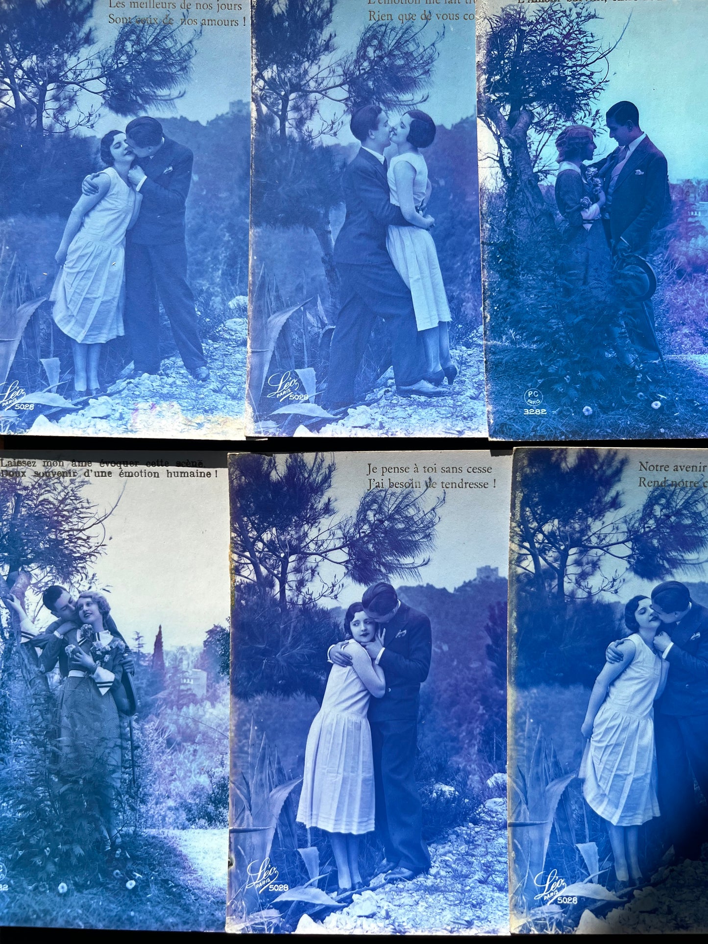 6 French Blue Tinted Romantic 1920s Postcards