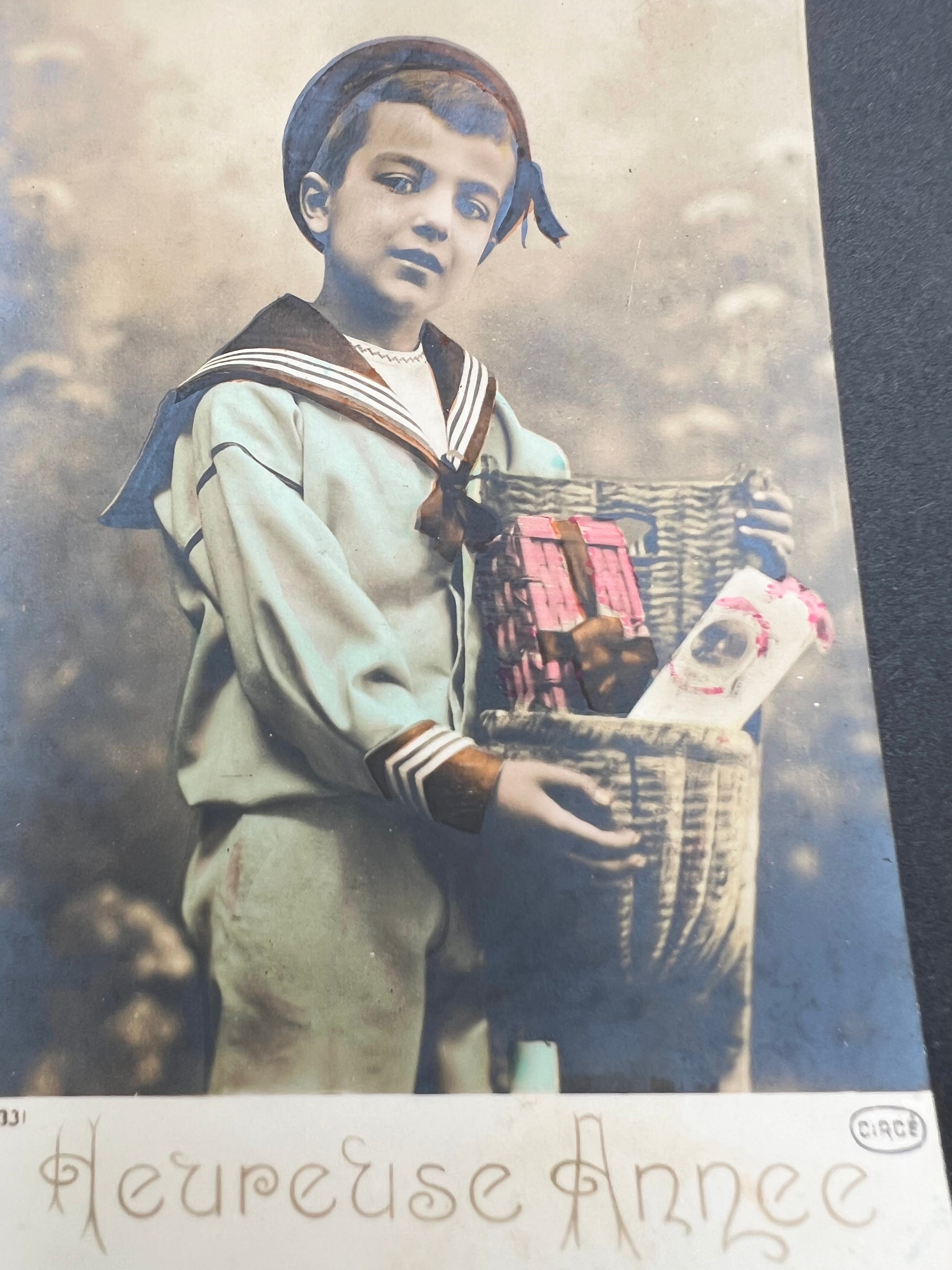 2 Little French Sailor Suited Boys with Armfuls of Presents..