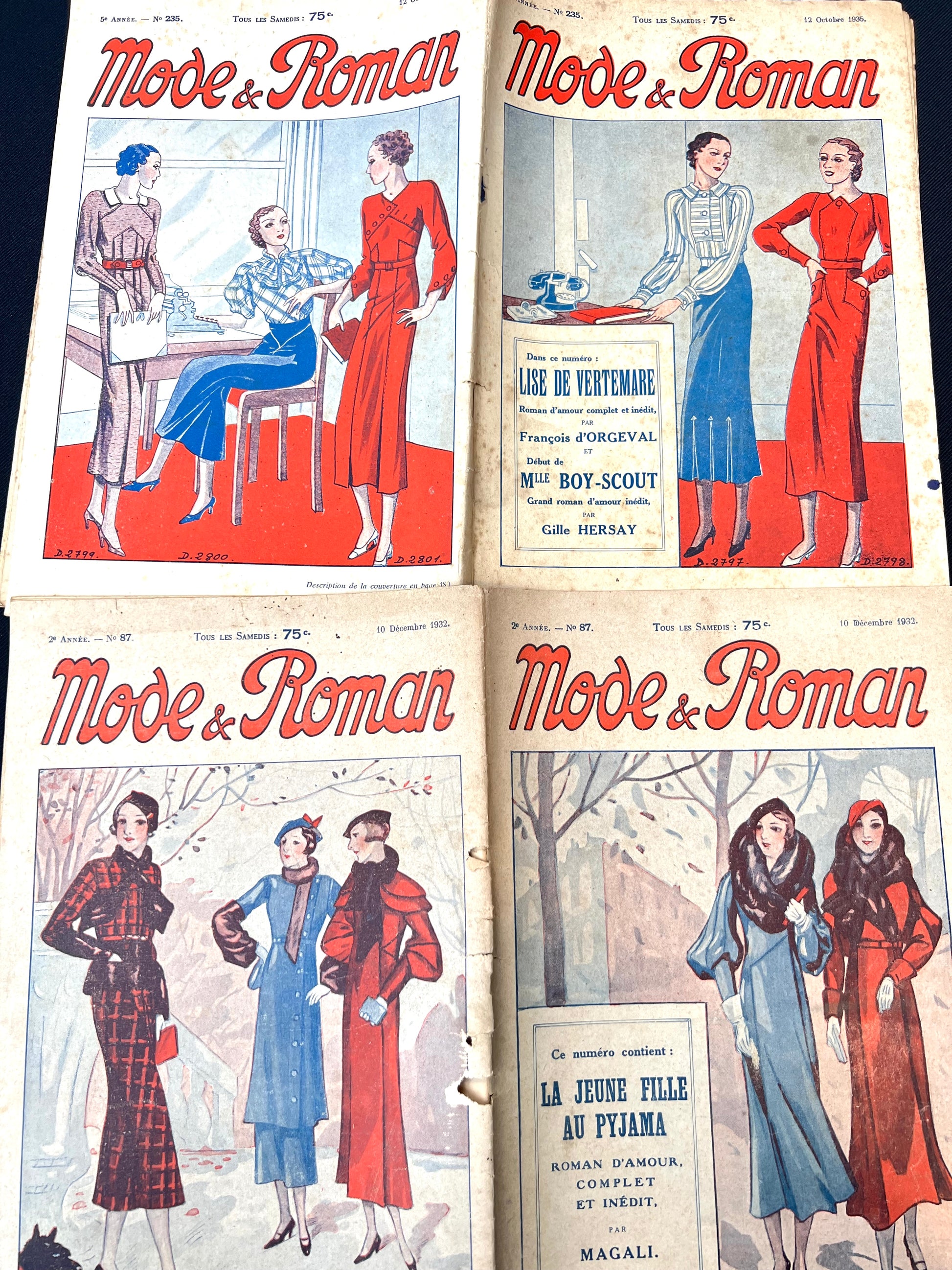 2 French Women's Magazine Mode & Roman from 1932 and 1935