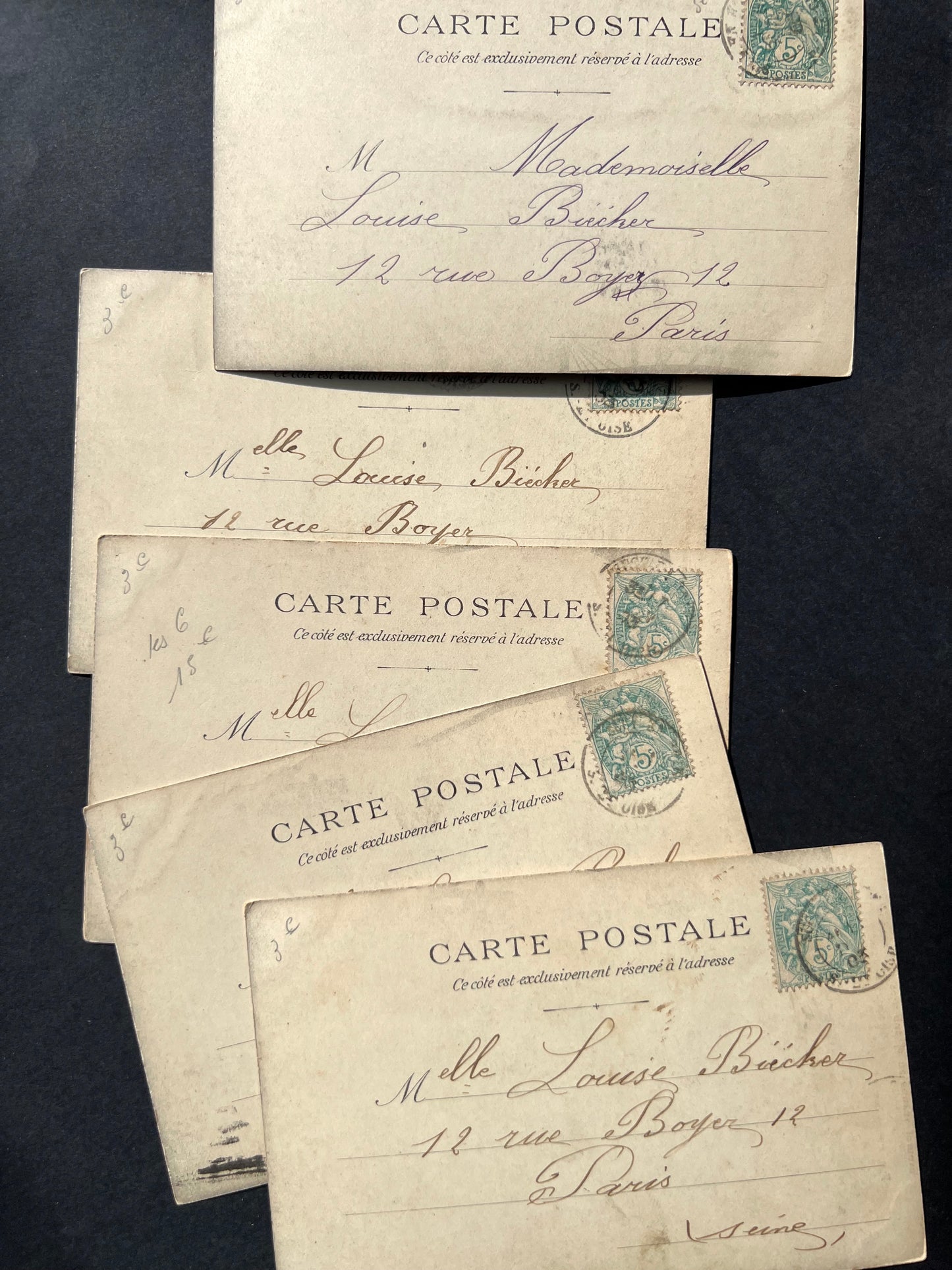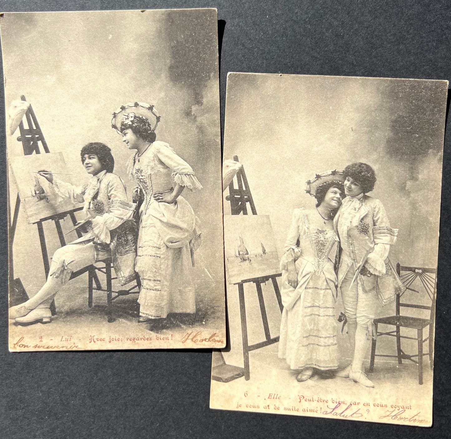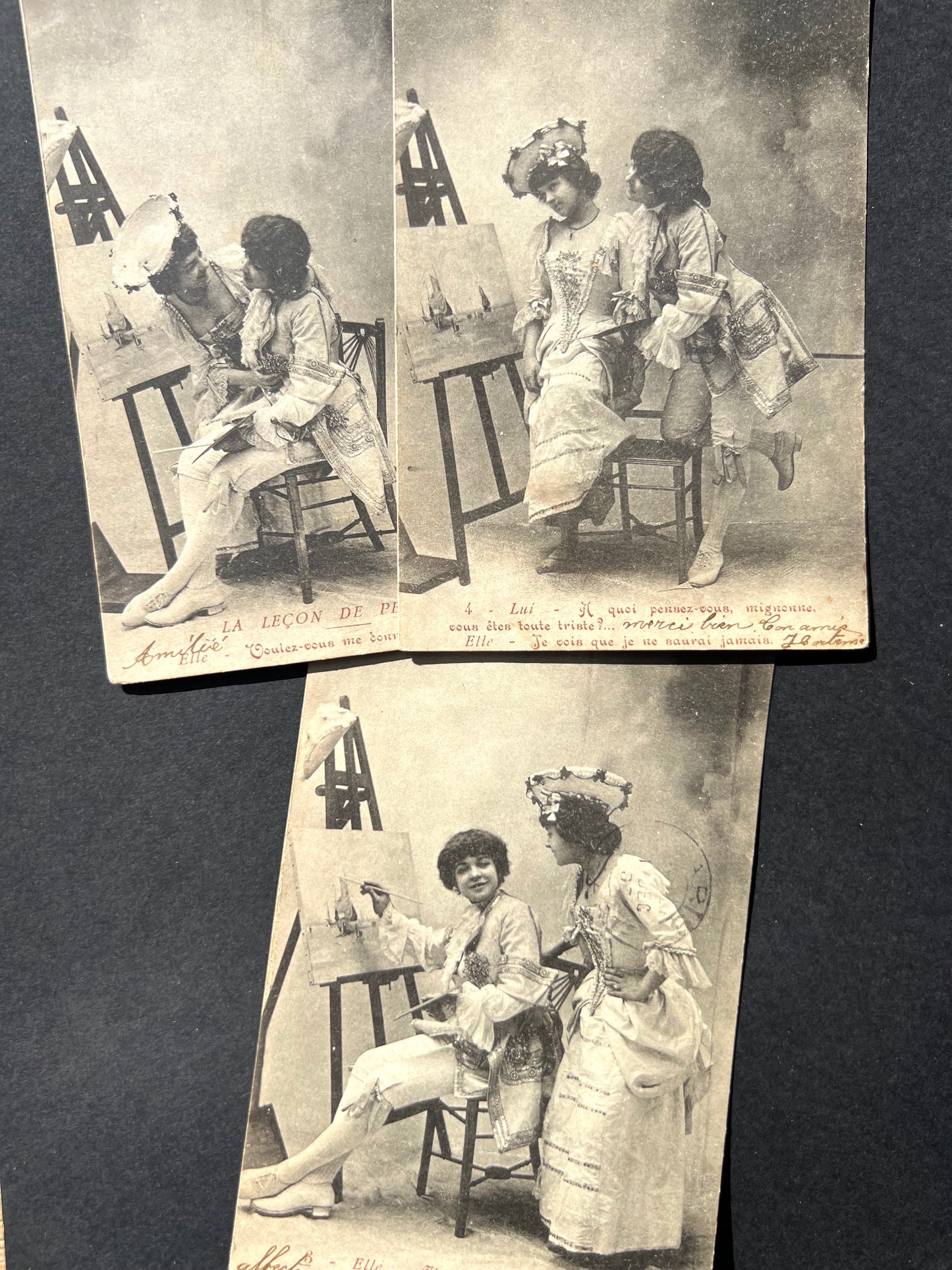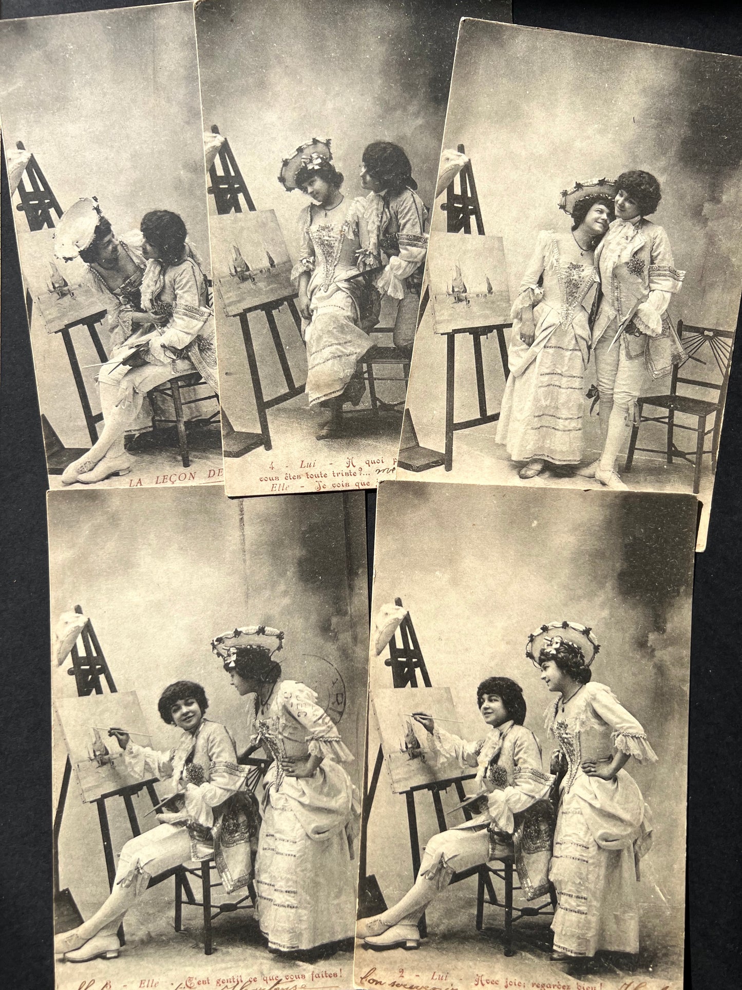 Art is Not The Only Thing on Her Mind - Set of 5 Romantic French Postcards from 1903
