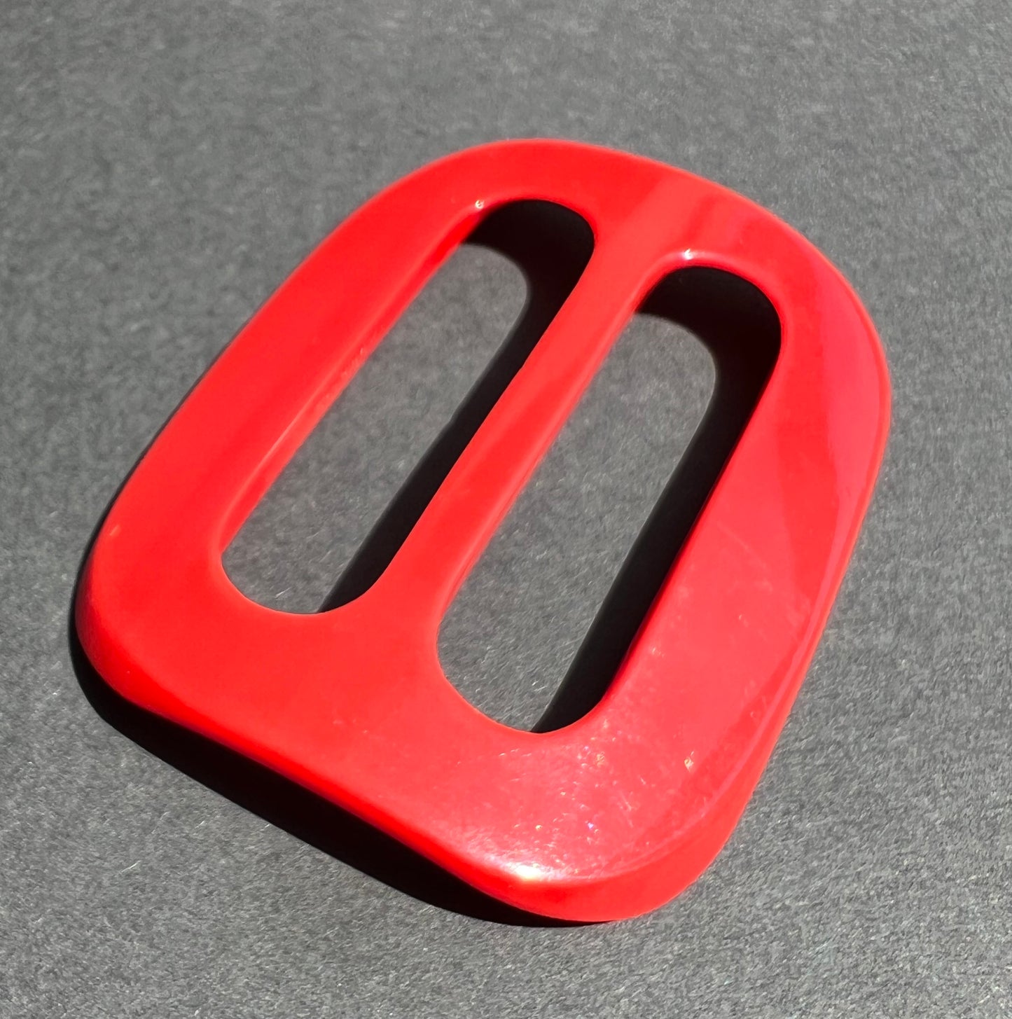 Just over 5cm wide, and 6.8cm tall , will take a belt just over 4.5cm wide.