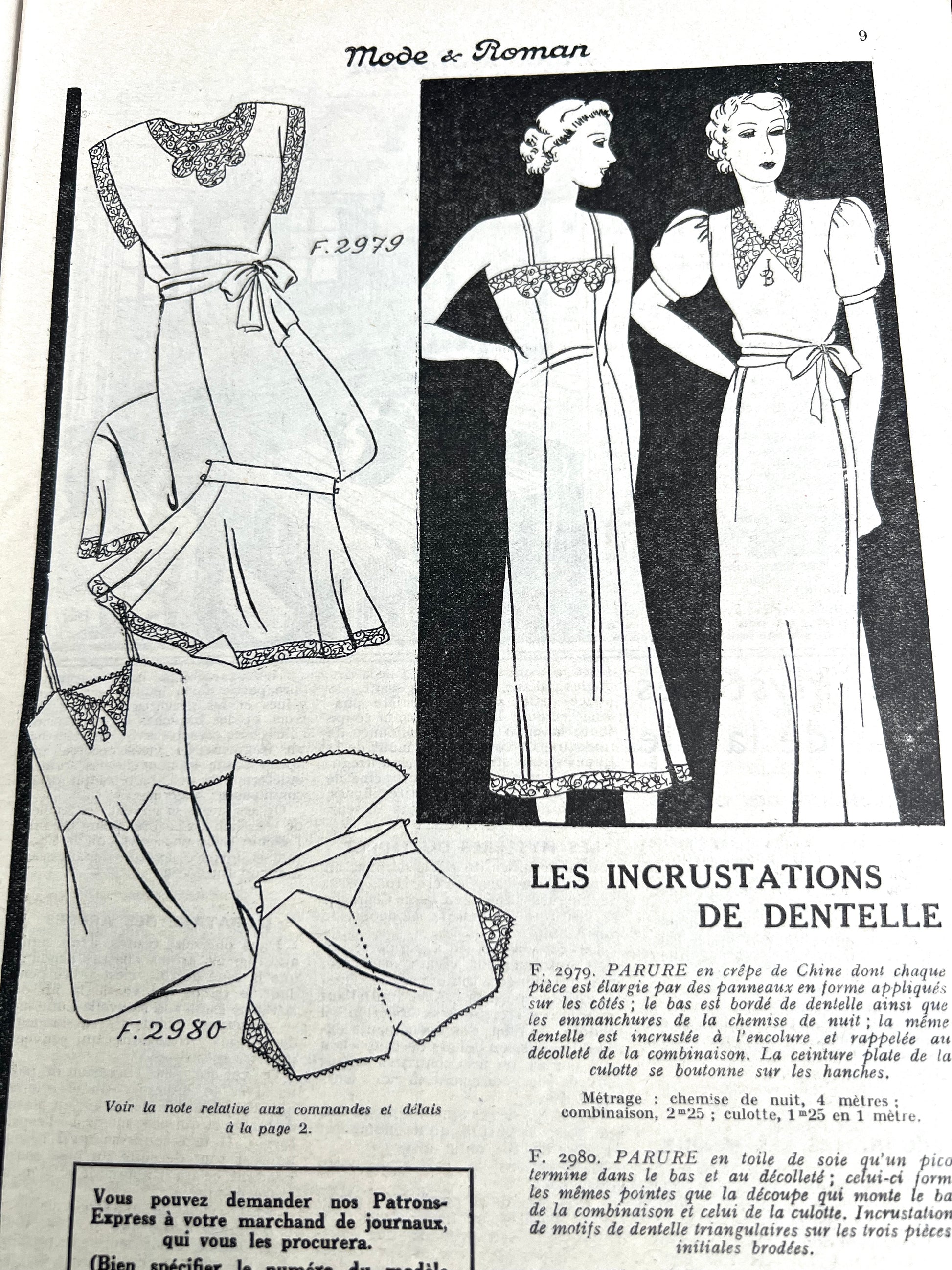 Needlework Projects + Lingerie in 9th January 1937 French Magazine Mode & Roman