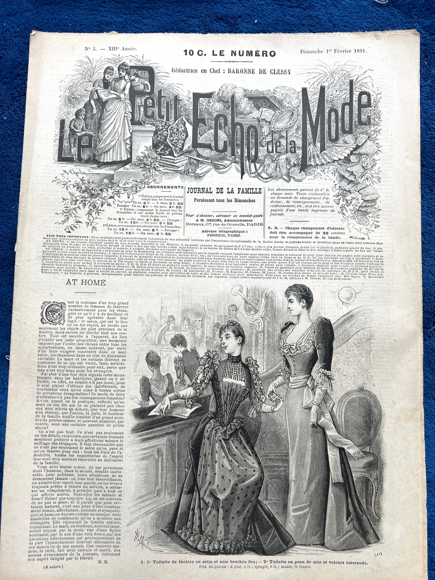 At The Theatre 134 years Ago in February 1891 French Fashion Paper Le Petit Echo de la Mode