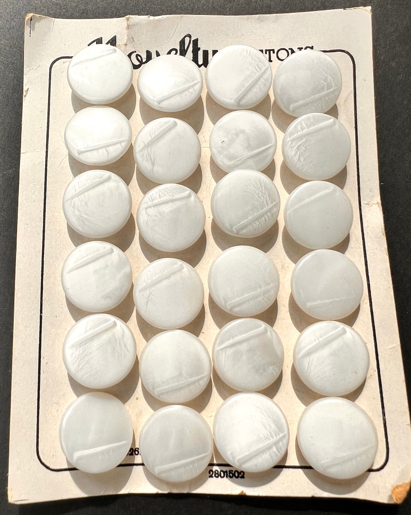 24 bright white vintage 1940s glass buttons.