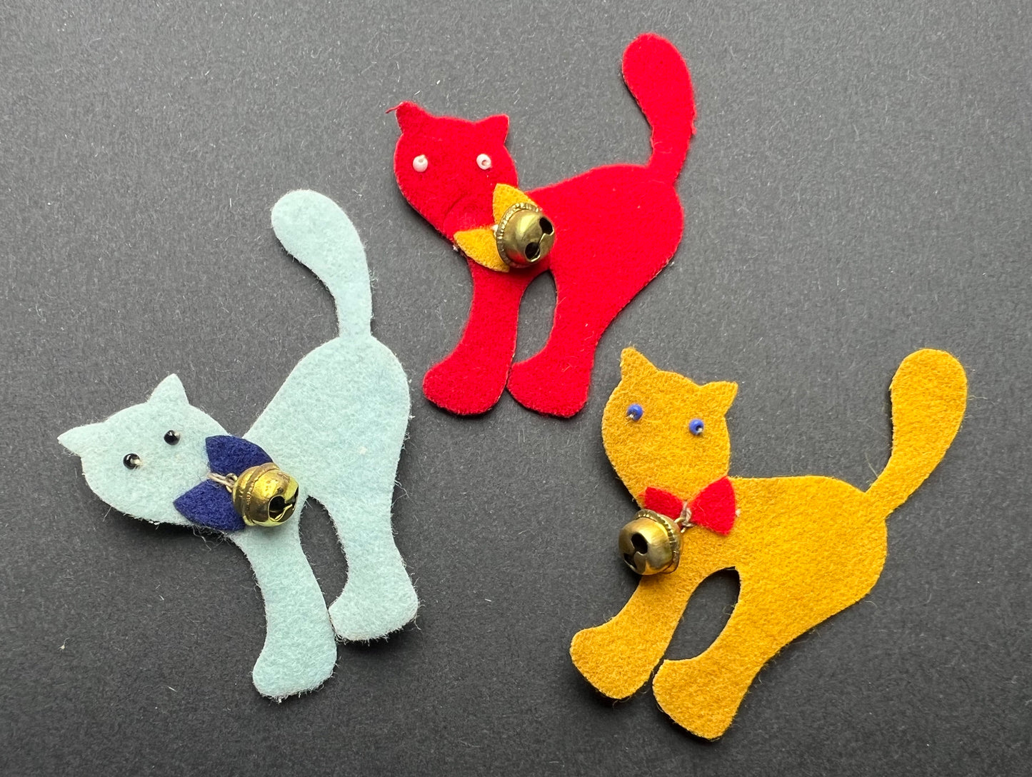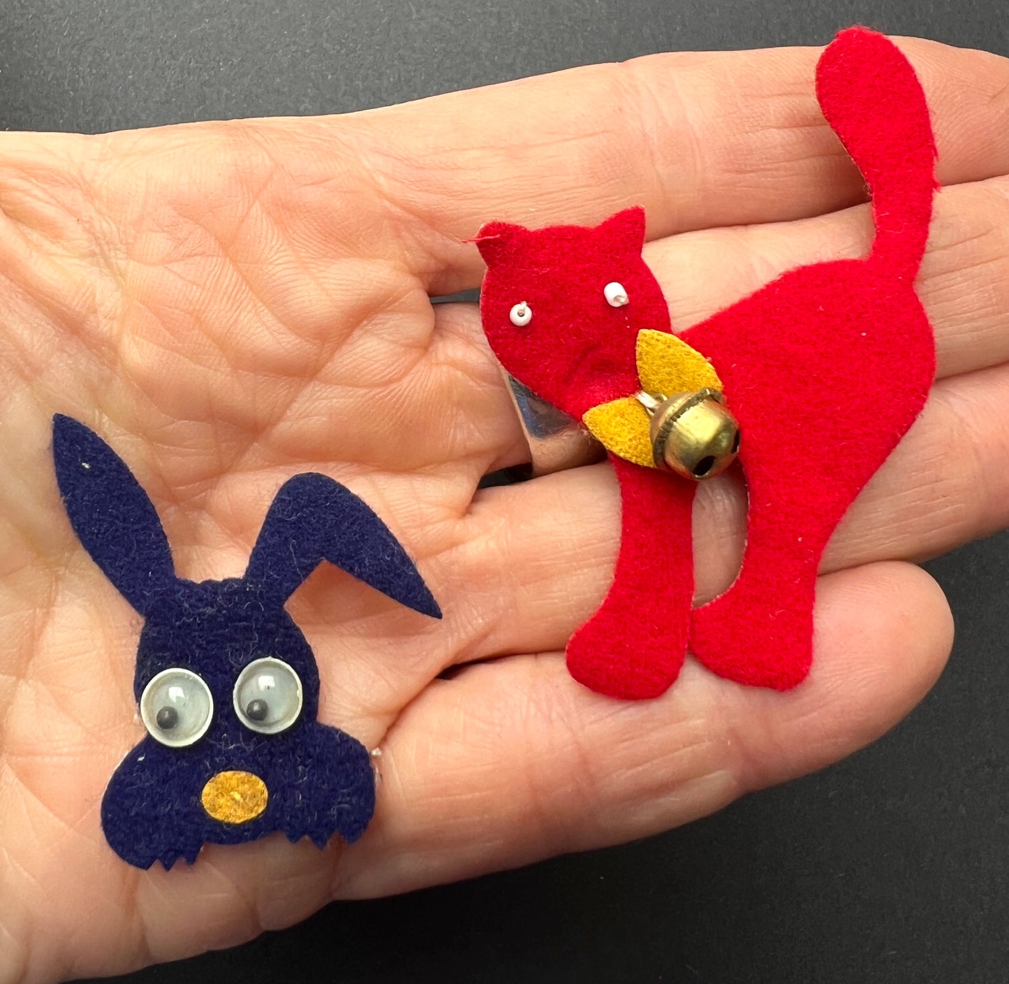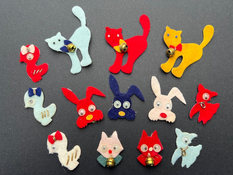 Sweet Little 1940s Felt Appliques with Googly Eyes and Bells