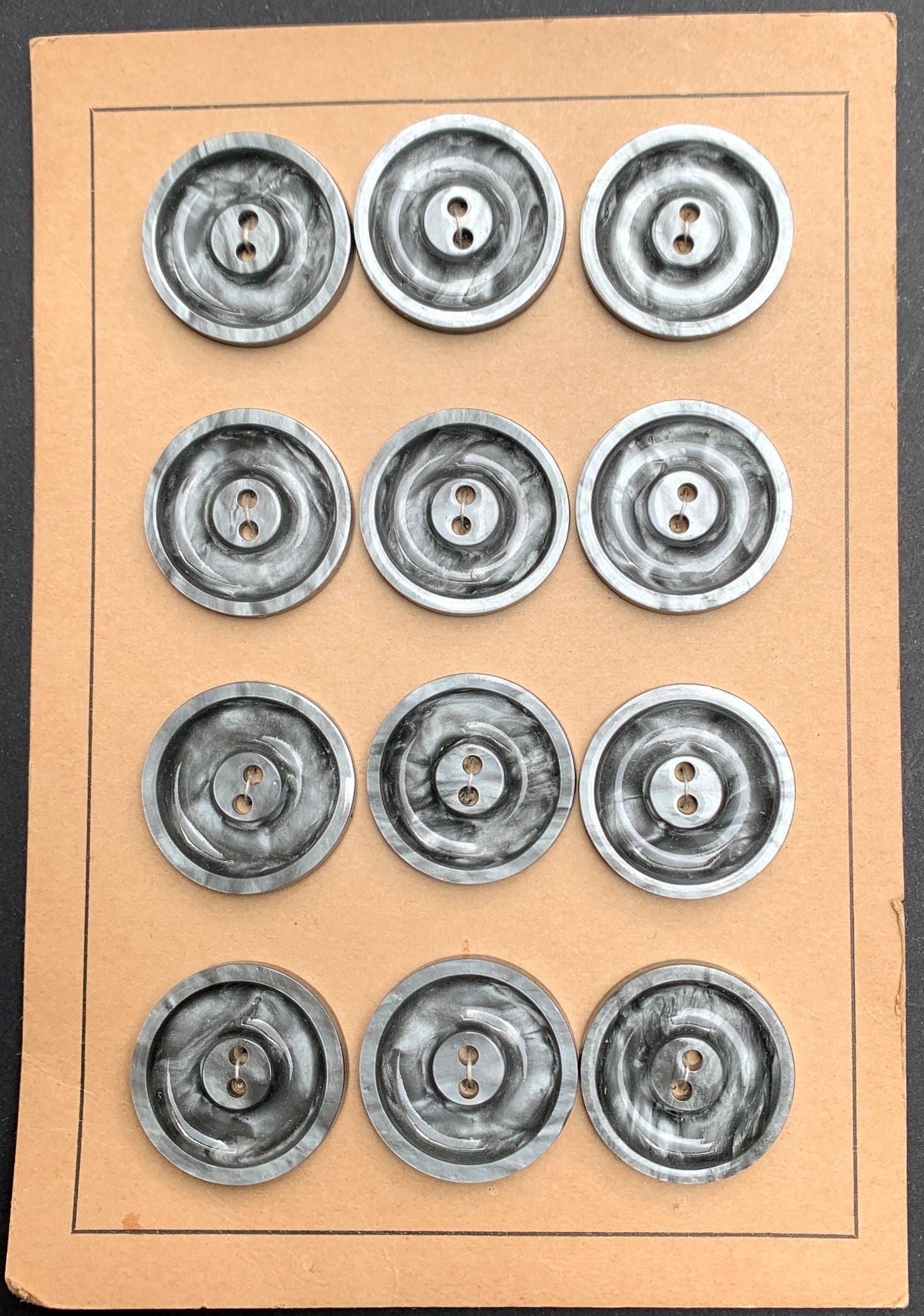 12 Mid Century Shiny Platinum Grey Lucite 2.2cm Buttons