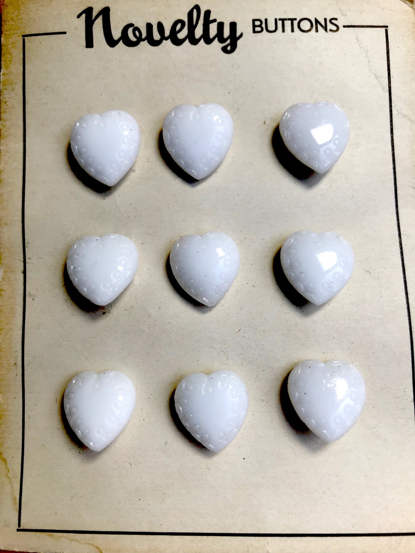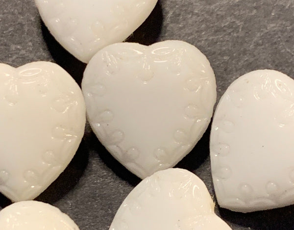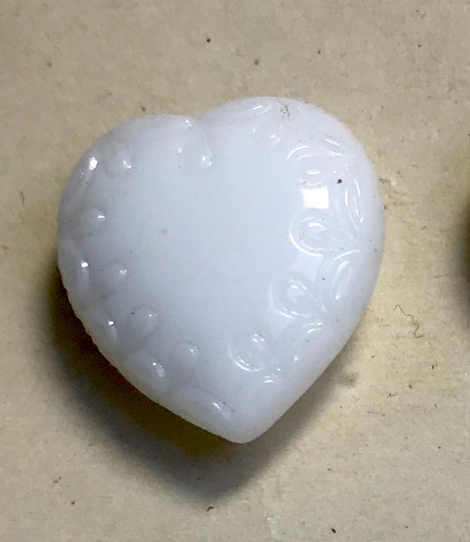 Delicately Etched Vintage 1940s 1.5cm White Glass Heart Buttons