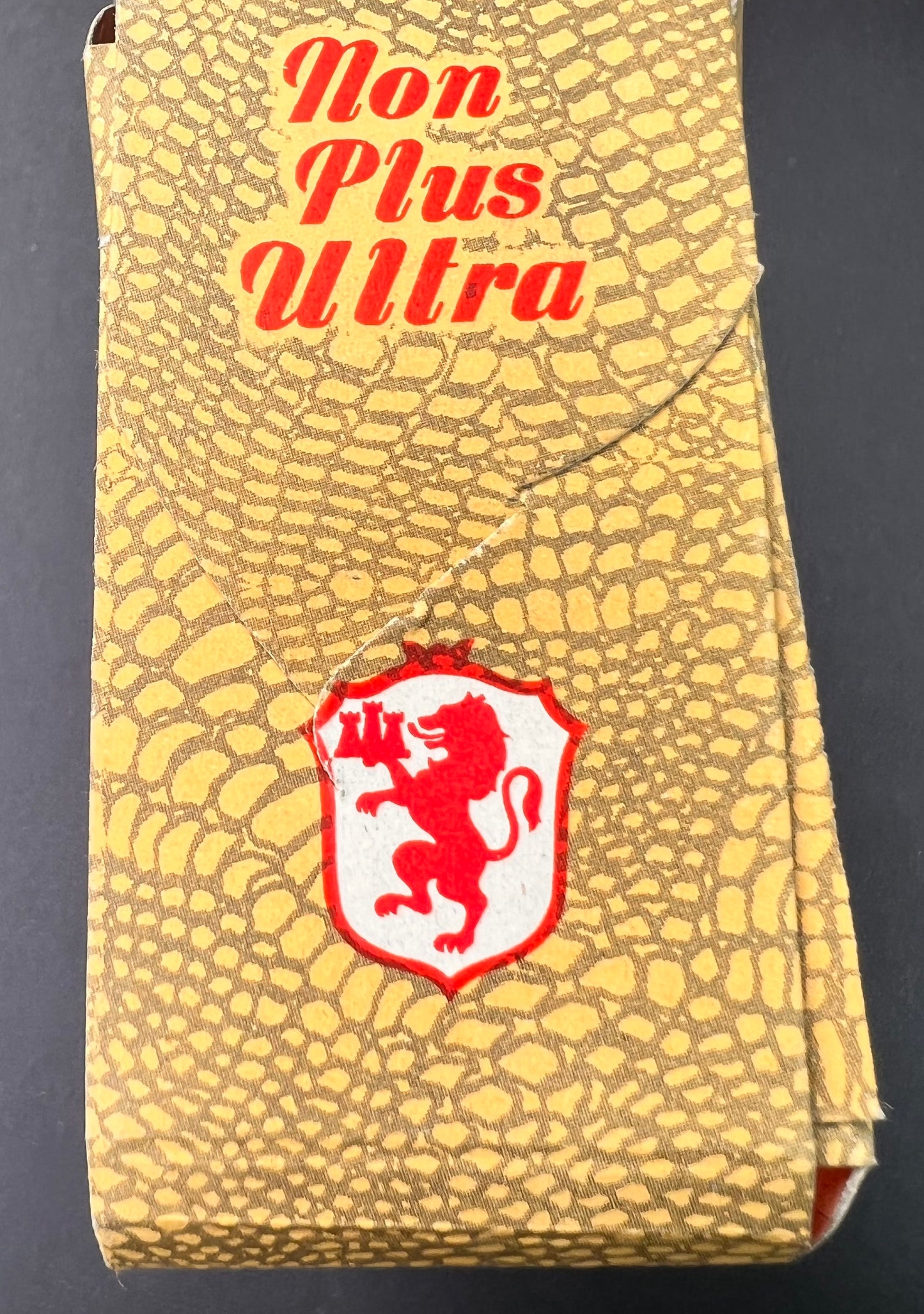"Non plus ultra" was apparently inscribed on the Pillars of Hercules at the Strait of Gibraltar, which marked the western end of the classical world. The phrase served as a warning: " (Let there) not (be) more (sailing) beyond."