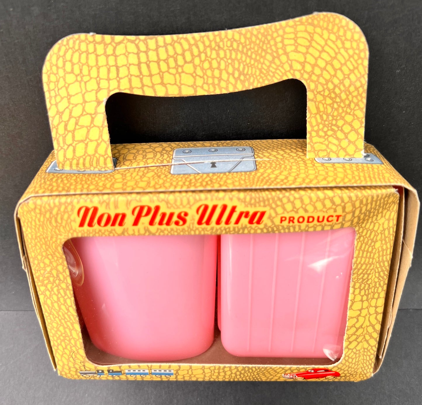 Charming 1950s Suitcase Shaped Travel Set with Soap Dish and Bottle
