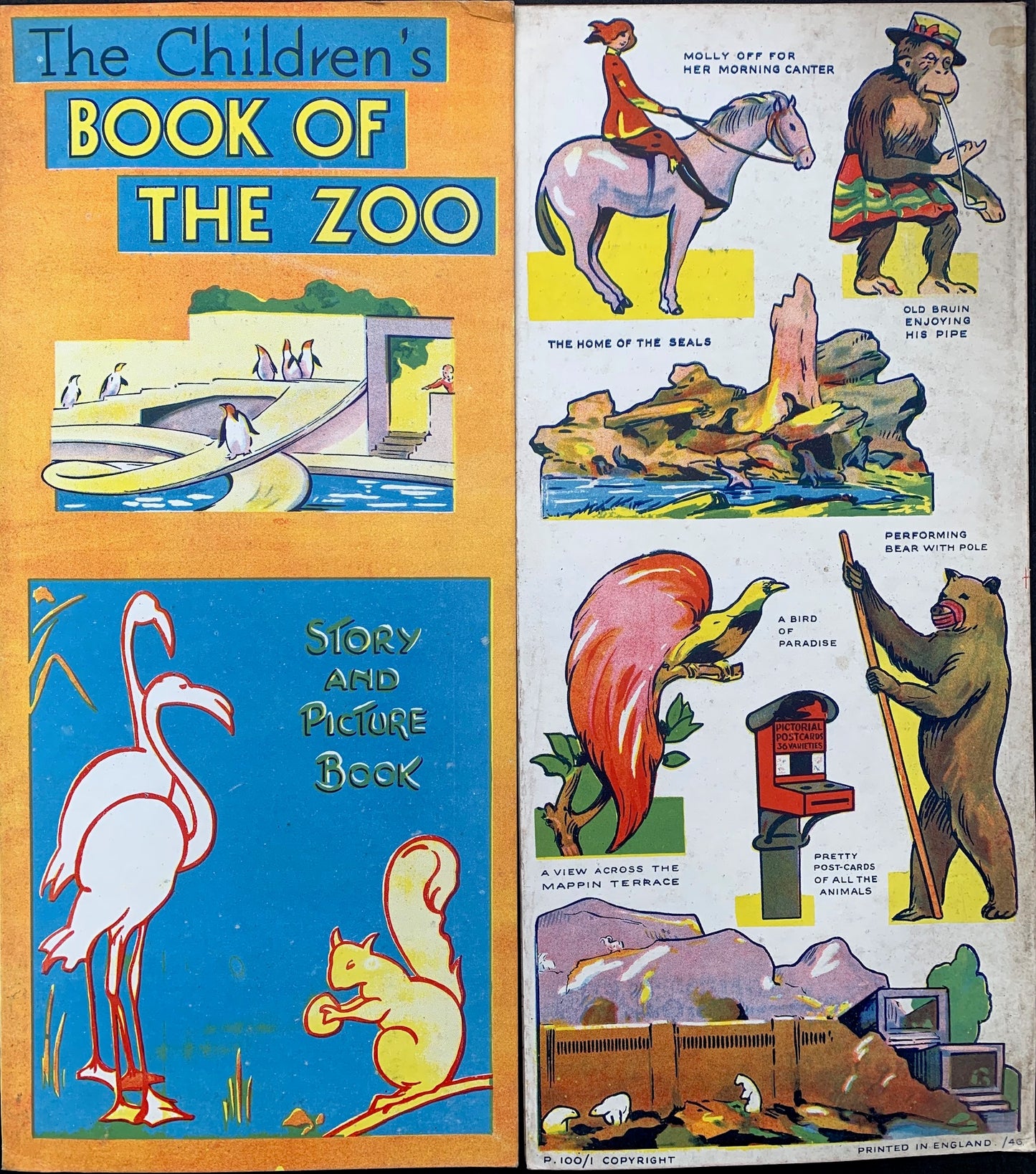 1930s Big 15" Fold Out Book of the Zoo - Pictures of London Zoo