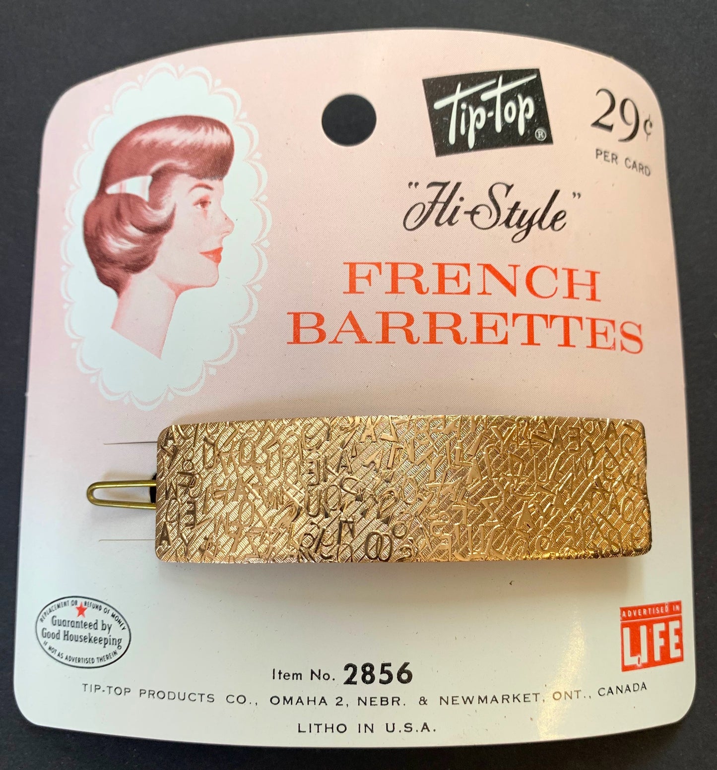 1950s Hi-Style Gold Tone Embossed Metal French Barrette - 8cm long