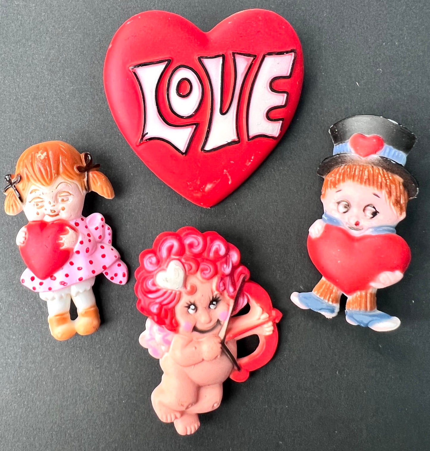 Gloriously kitsch 1970s plastic brooches to get your message across in the most frivolous way possible...these are.