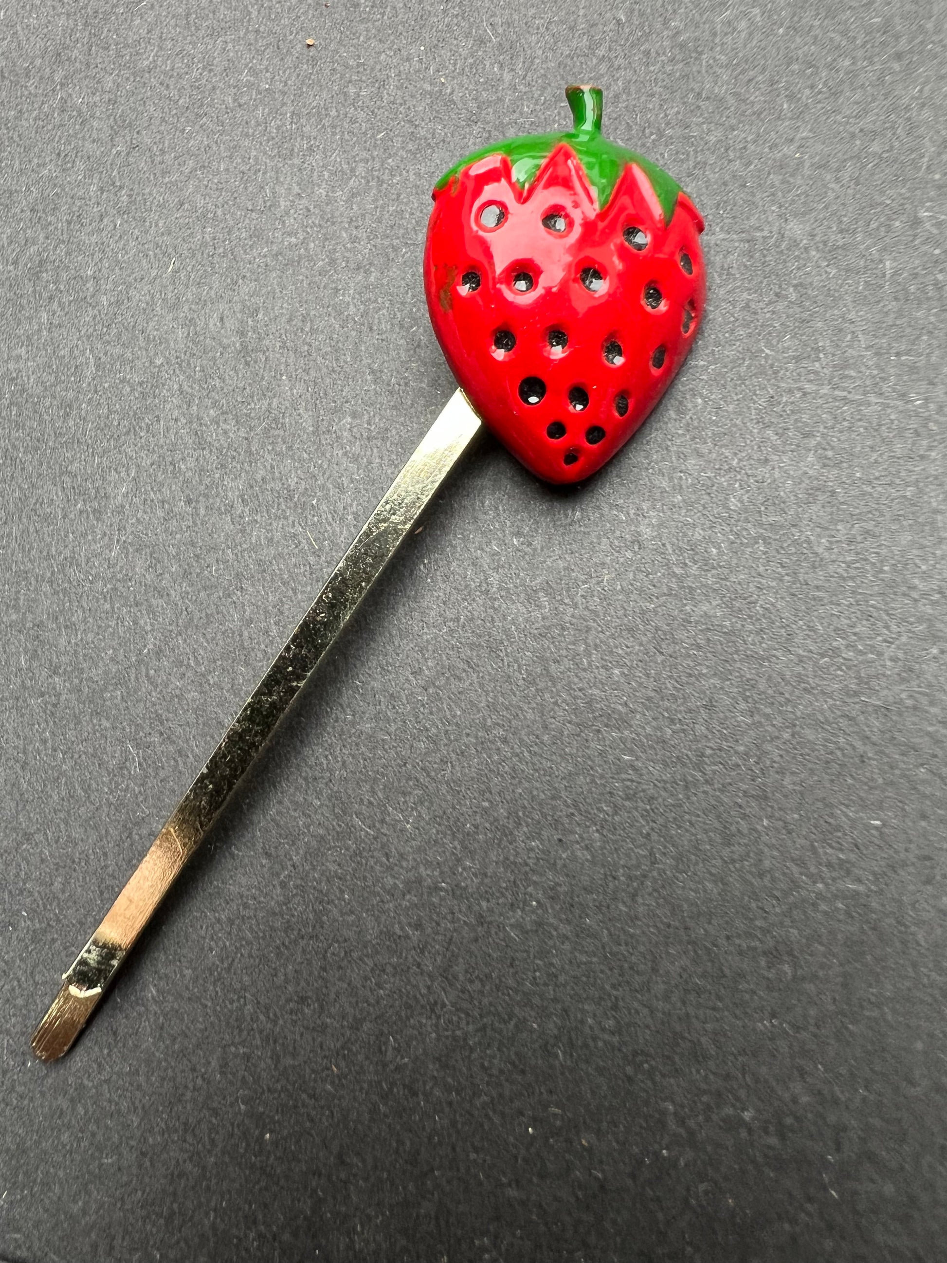 Vintage FRUIT Bobby Pins / Hair slides Apples, Cherries, Lemons, Strawberries, Peaches