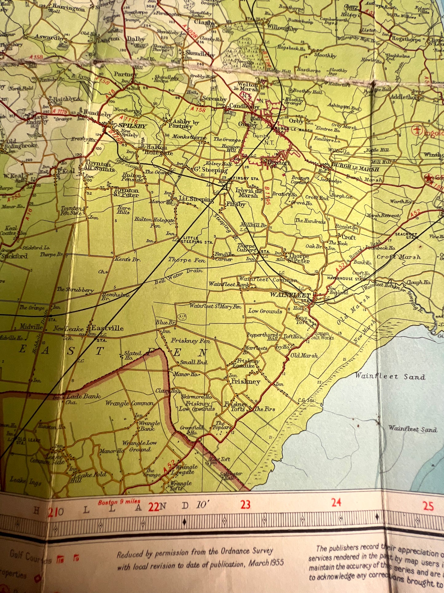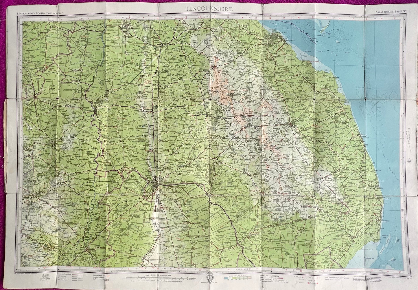 1950s Bartholomew's Map of Lincolnshire Sheet 30 on Cloth