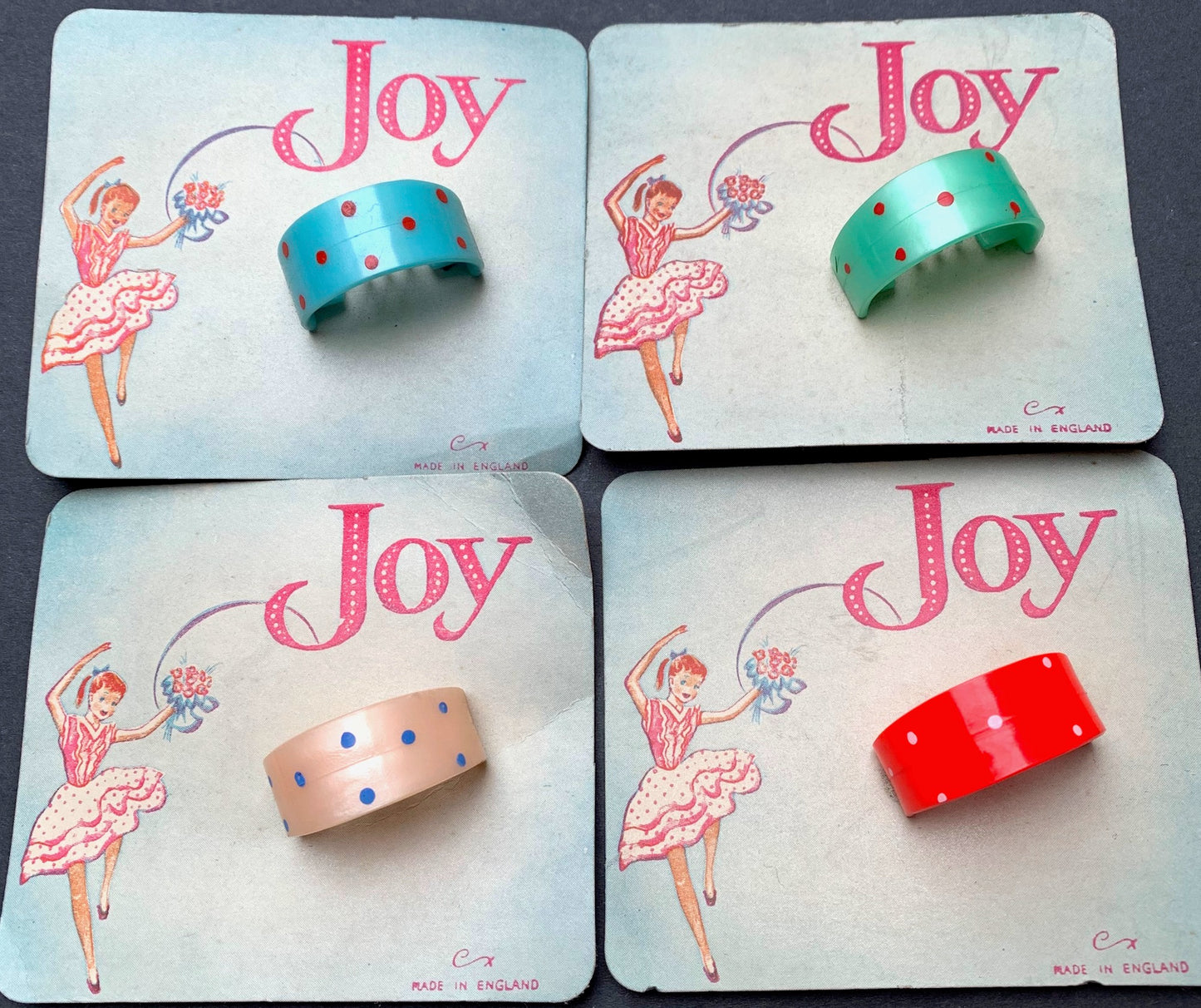 1950s JOY Made in England Spotty Pony Tail Holders / Hair Clips.
