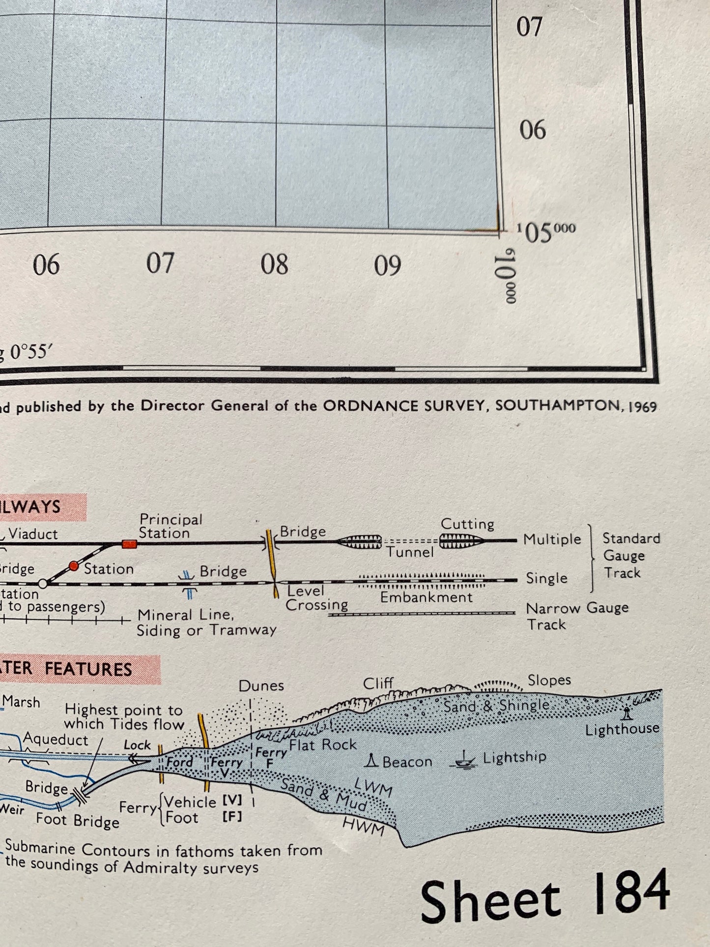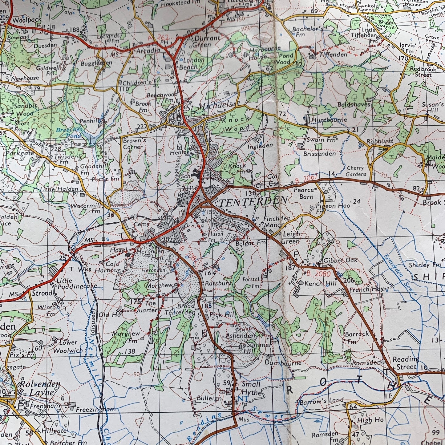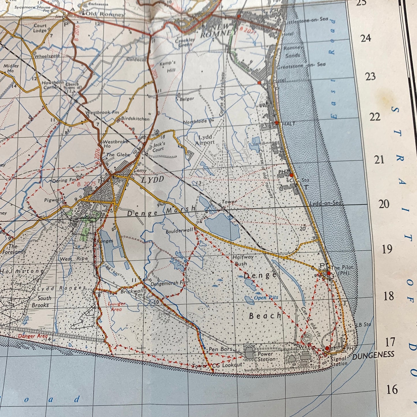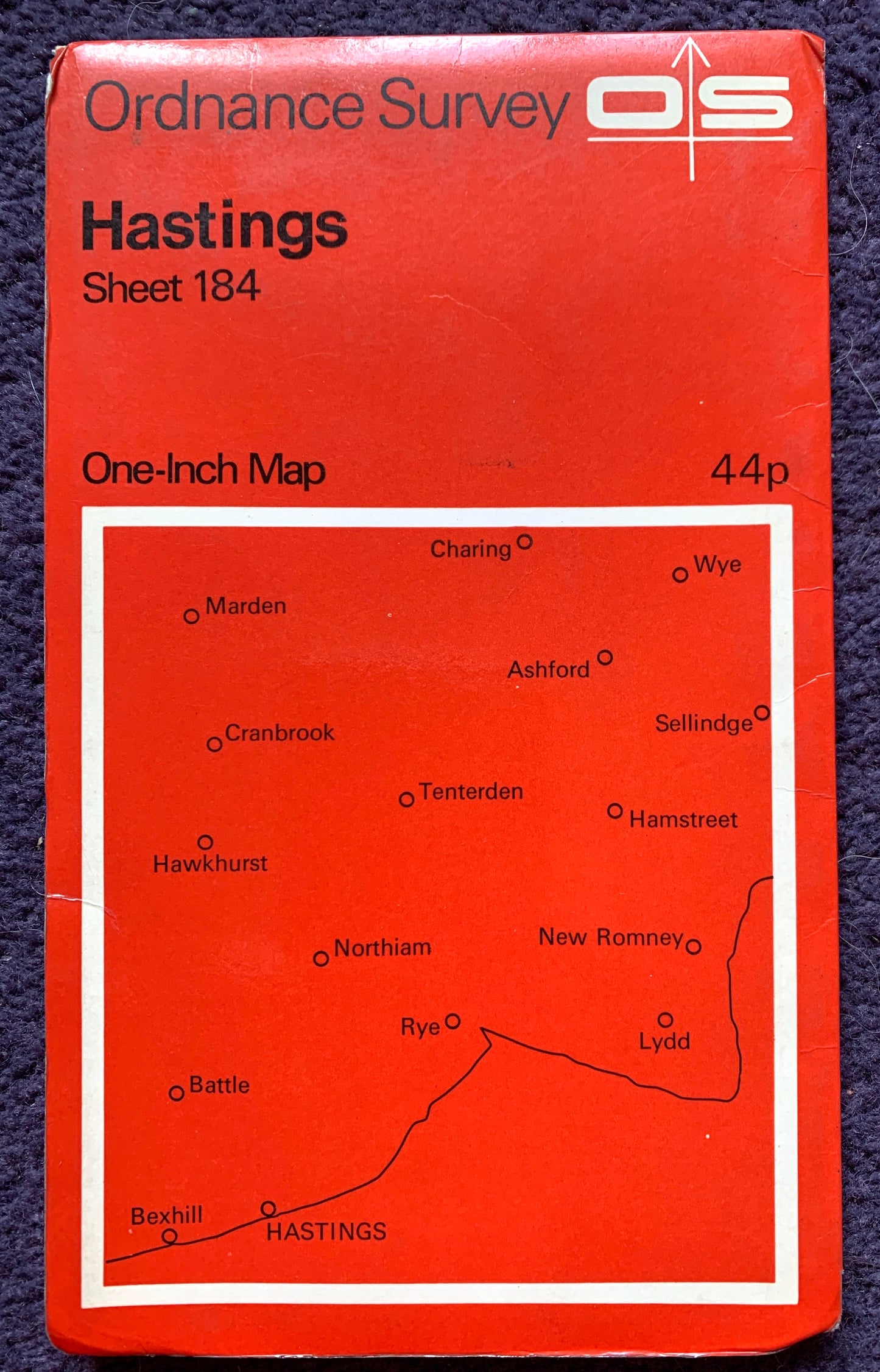 Published in 1969. Sheet no 184 of Hastings and surrounding area including Bexhill, Battle, Cranbrook, Tenterden, Winchelsea, Rye, Lydd, New Romney, Ashford, Dungeness.