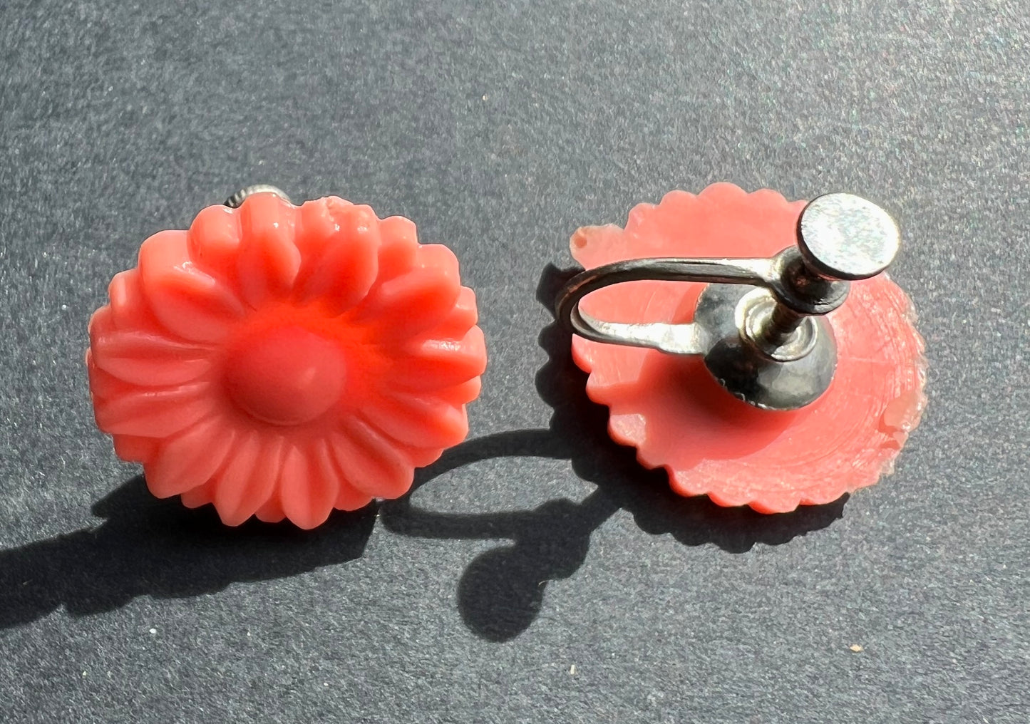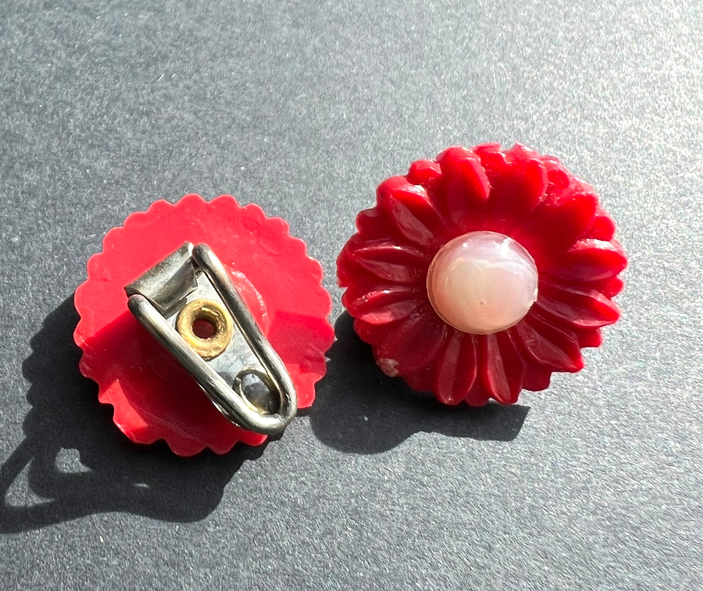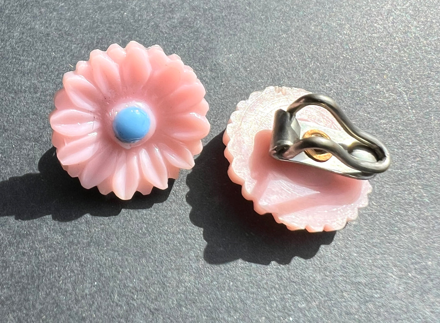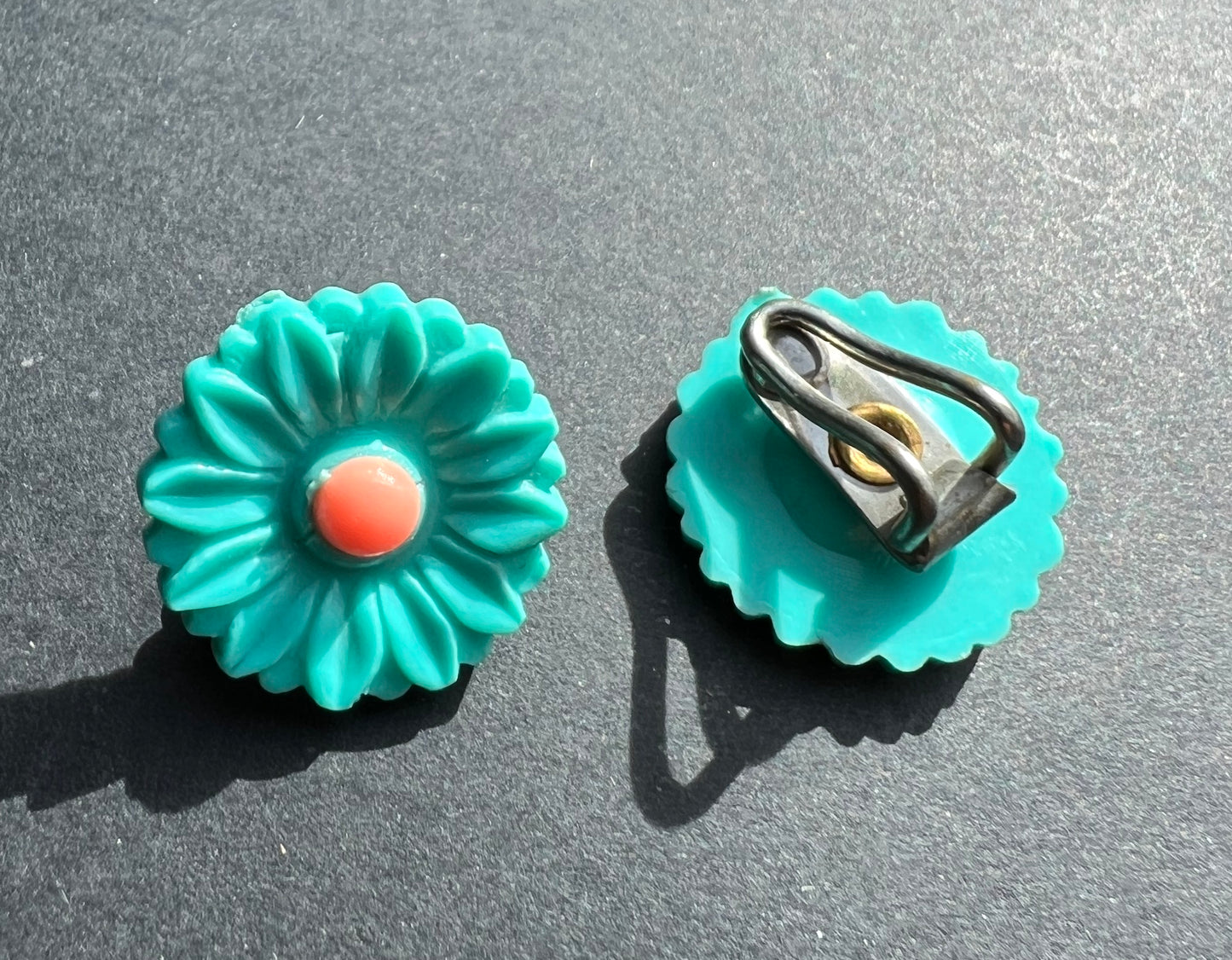 Delightful Little 1940s Flower Clip-on Earrings - 1.8cm wide.