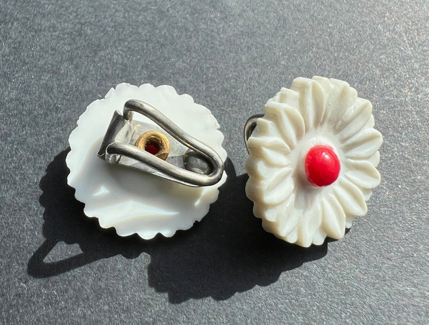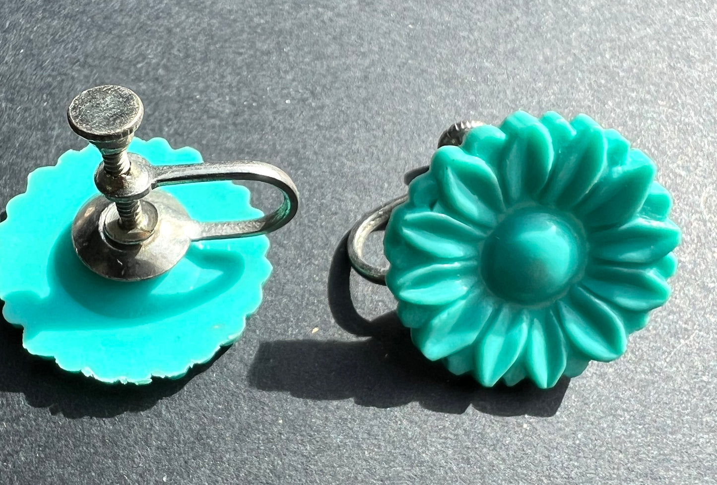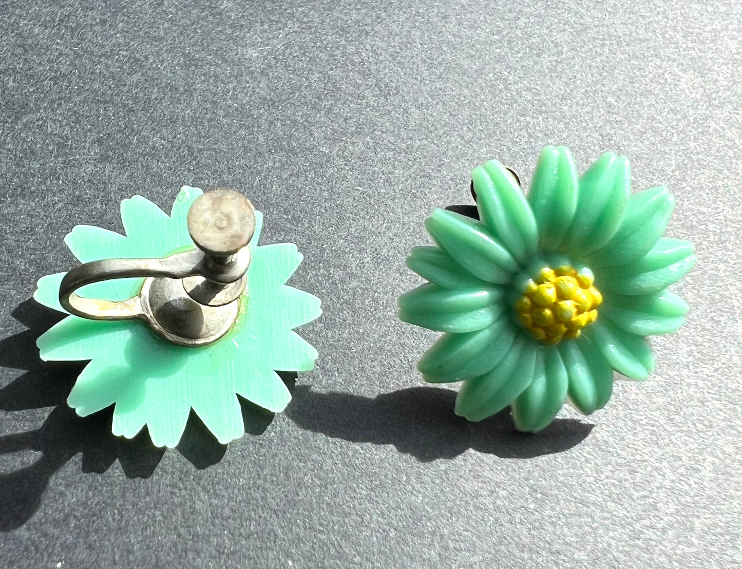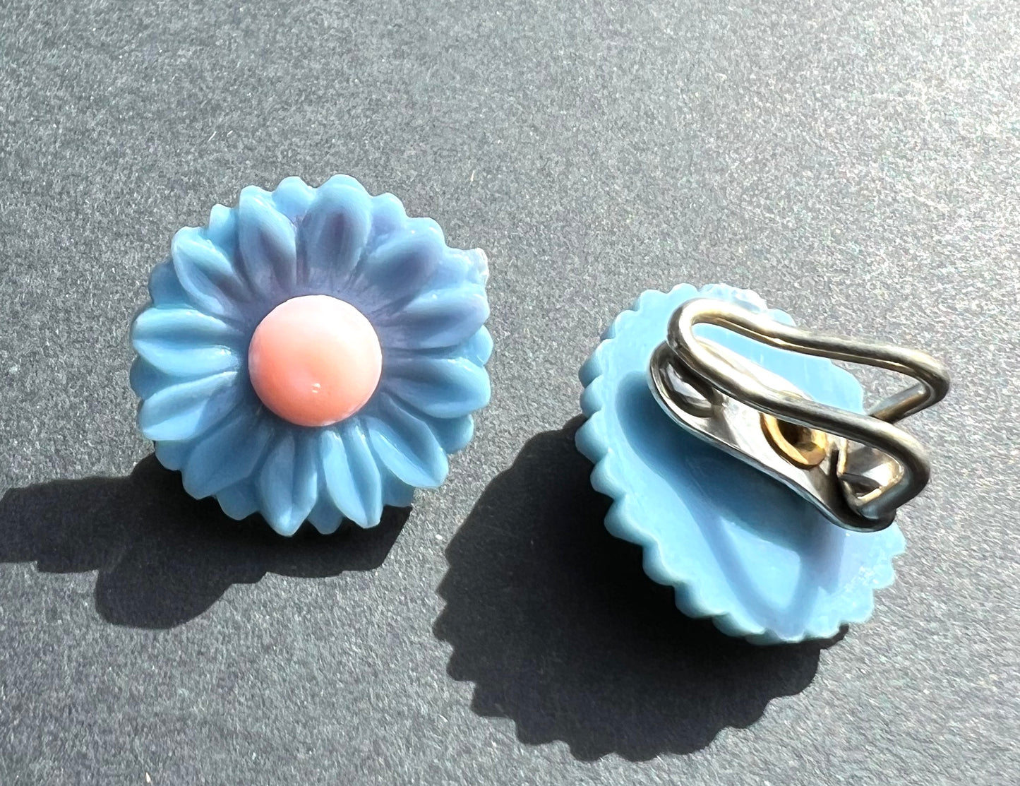 Delightful Little 1940s Flower Clip-on Earrings - 1.8cm wide.