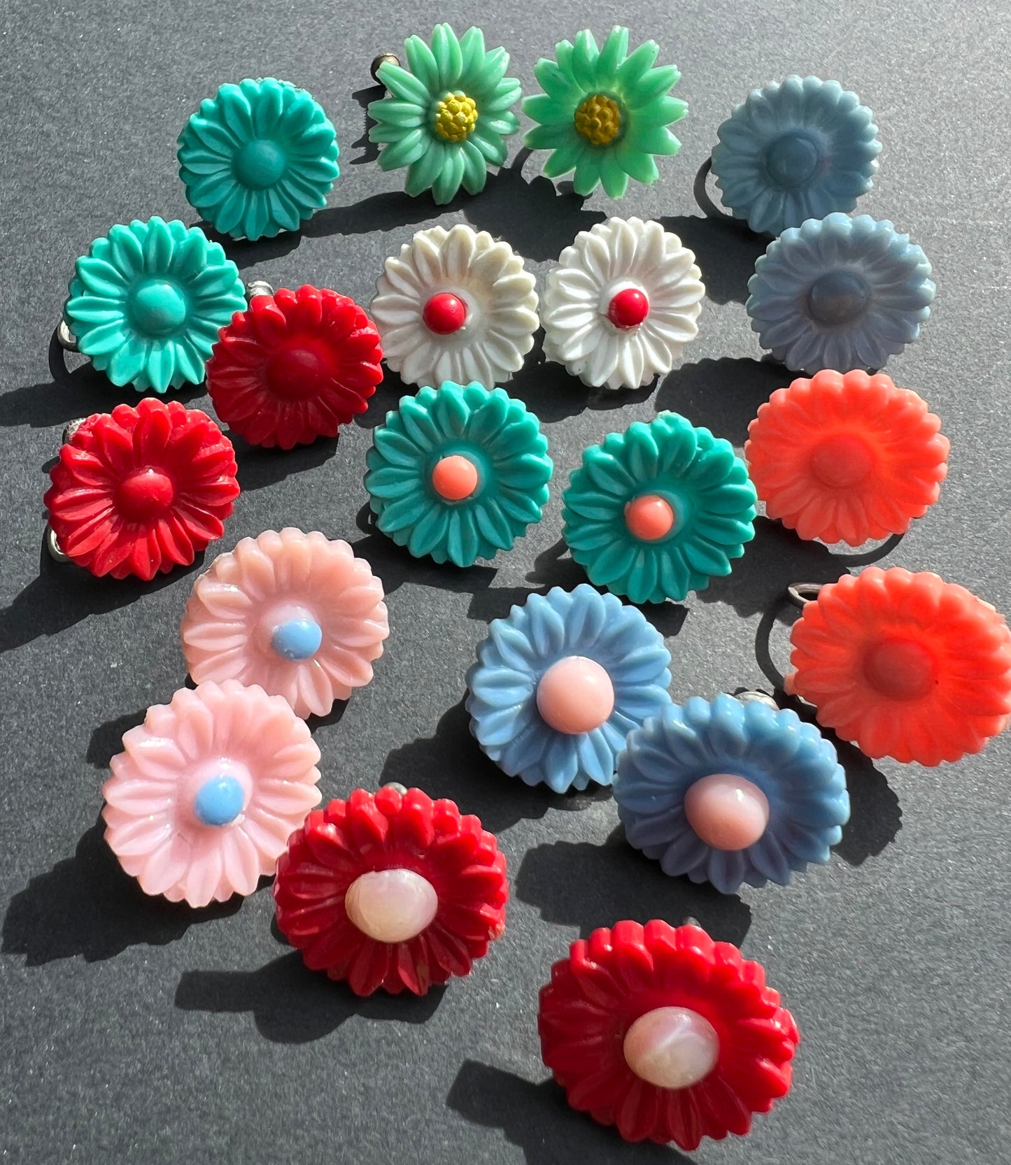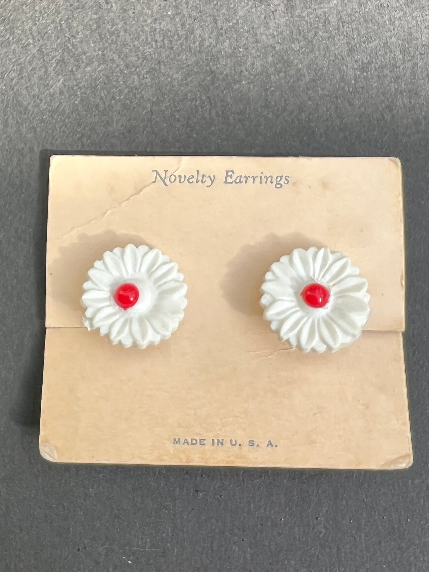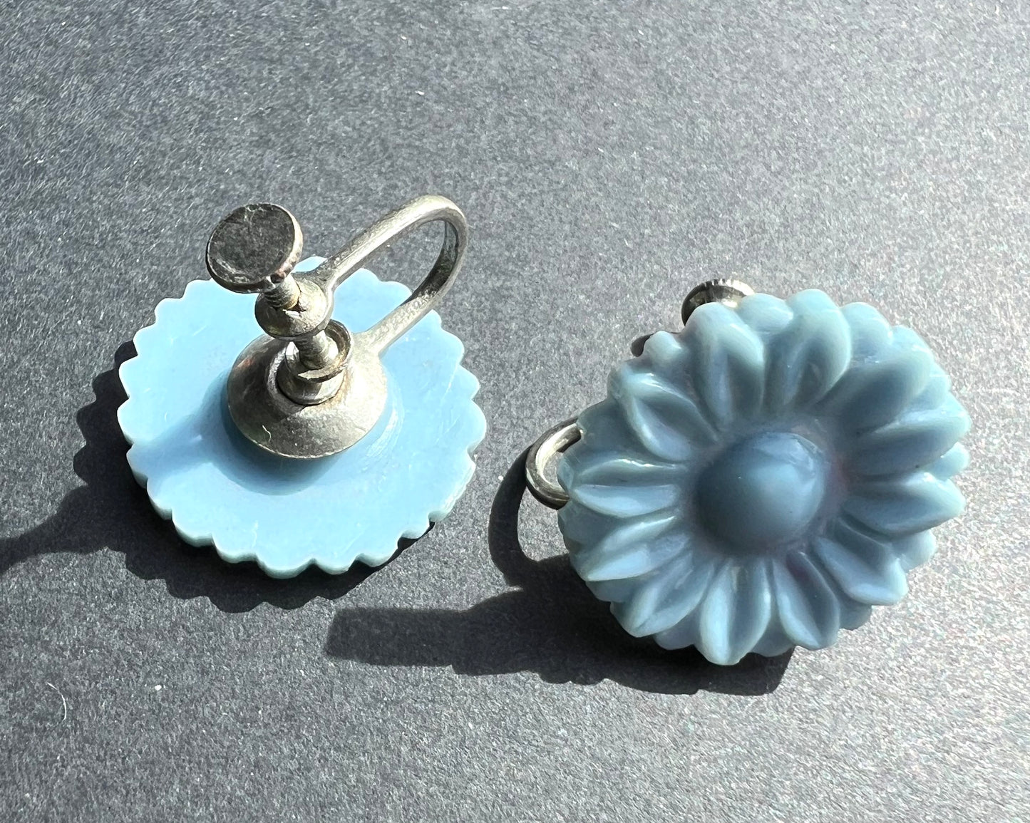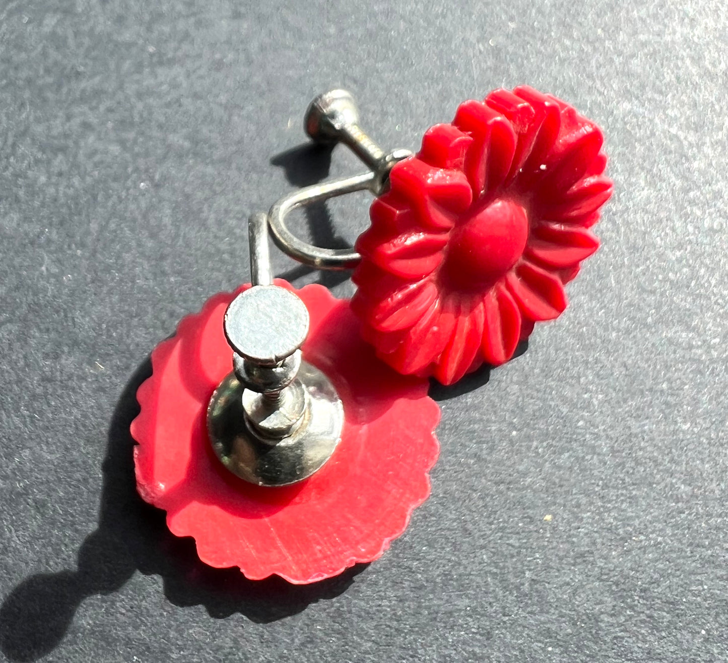 Delightful Little 1940s Flower Clip-on Earrings - 1.8cm wide.