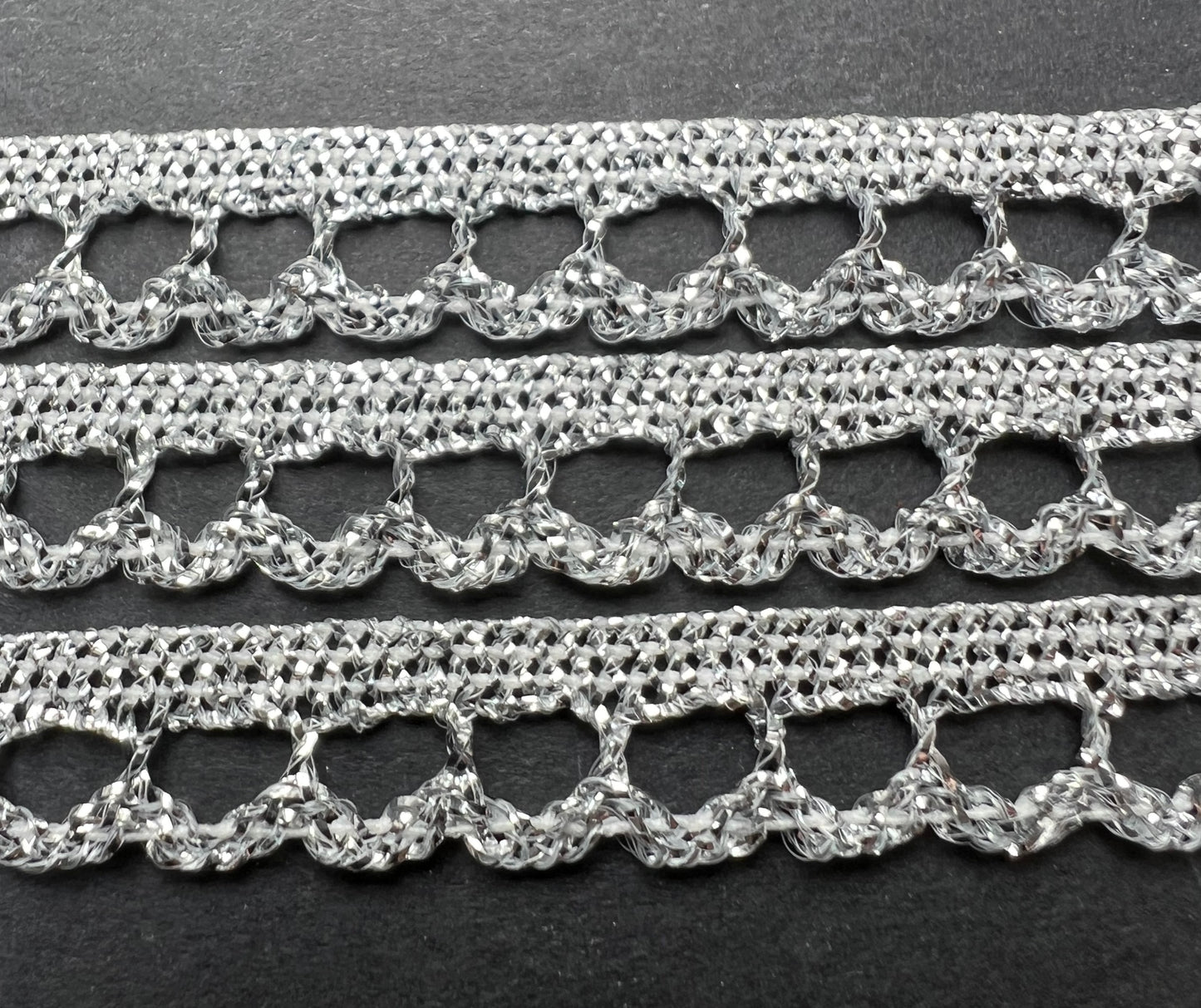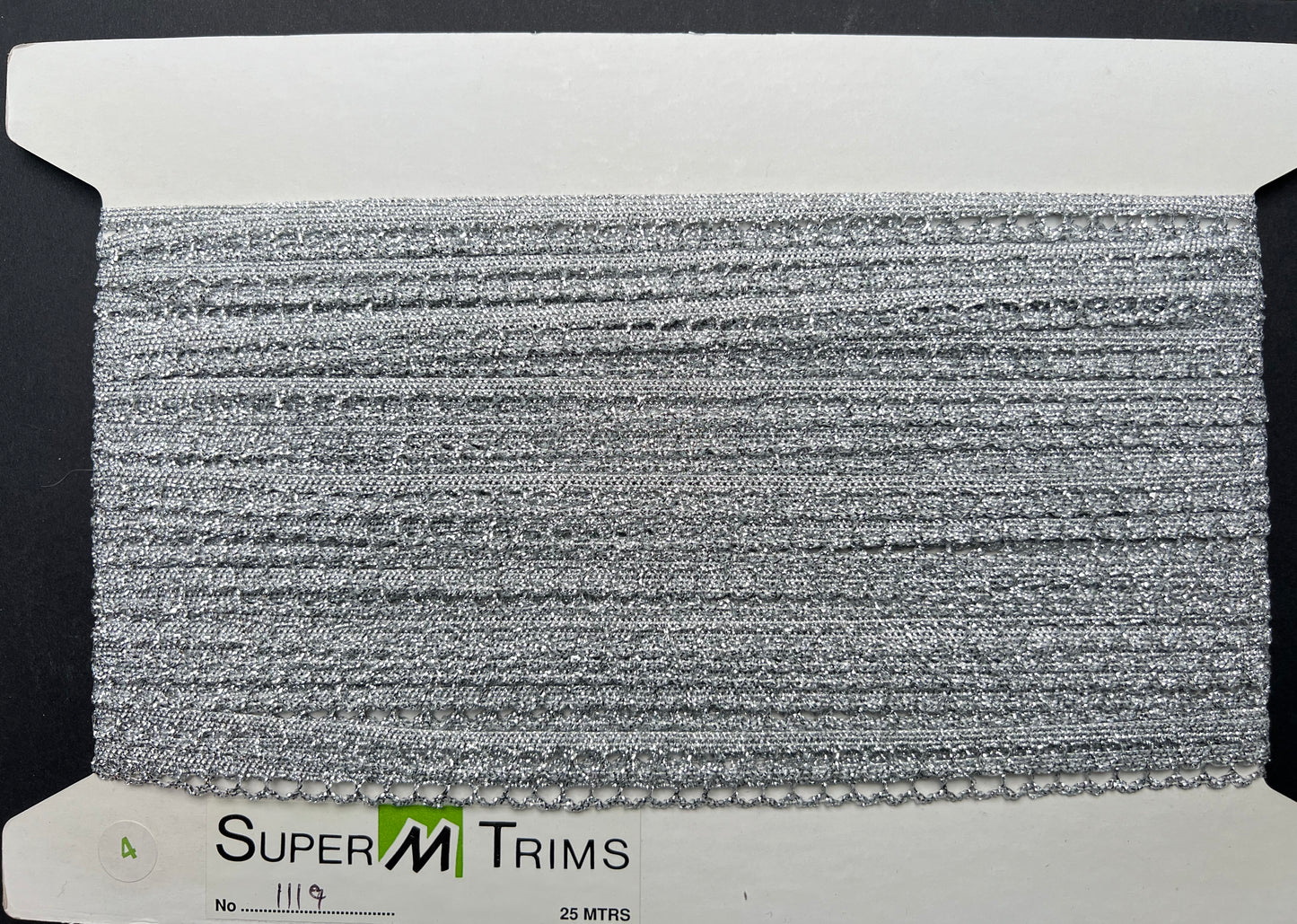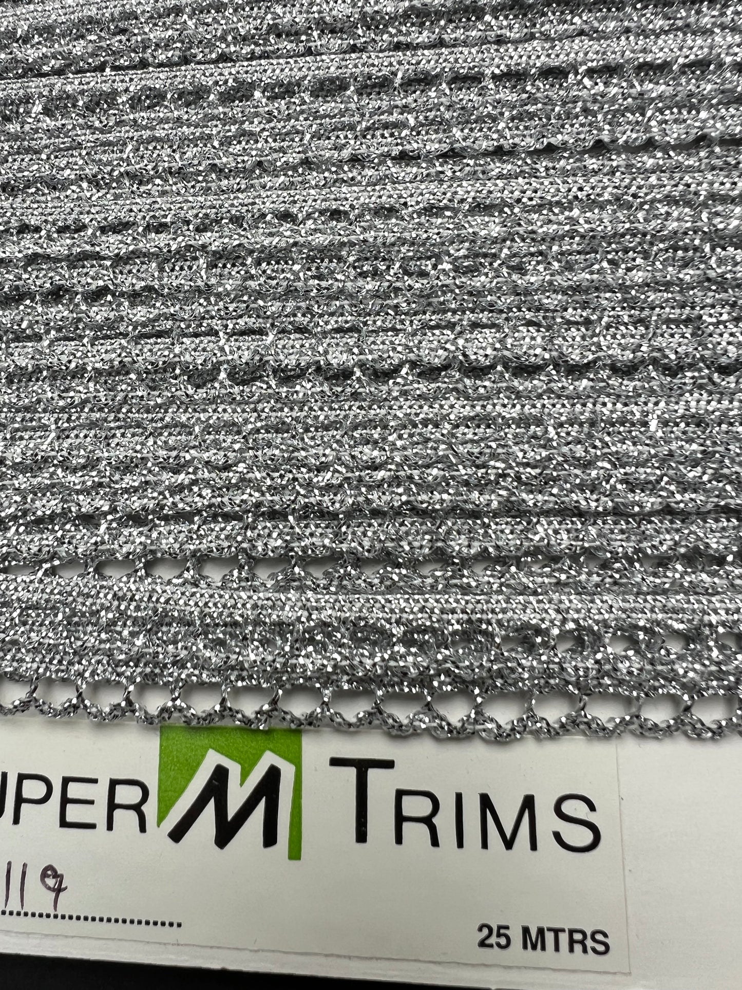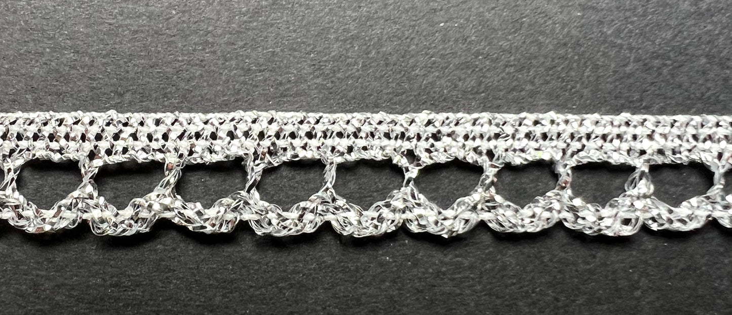 1m or 25m Vintage Sparkly Elastic Silver Trim - 1cm wide..