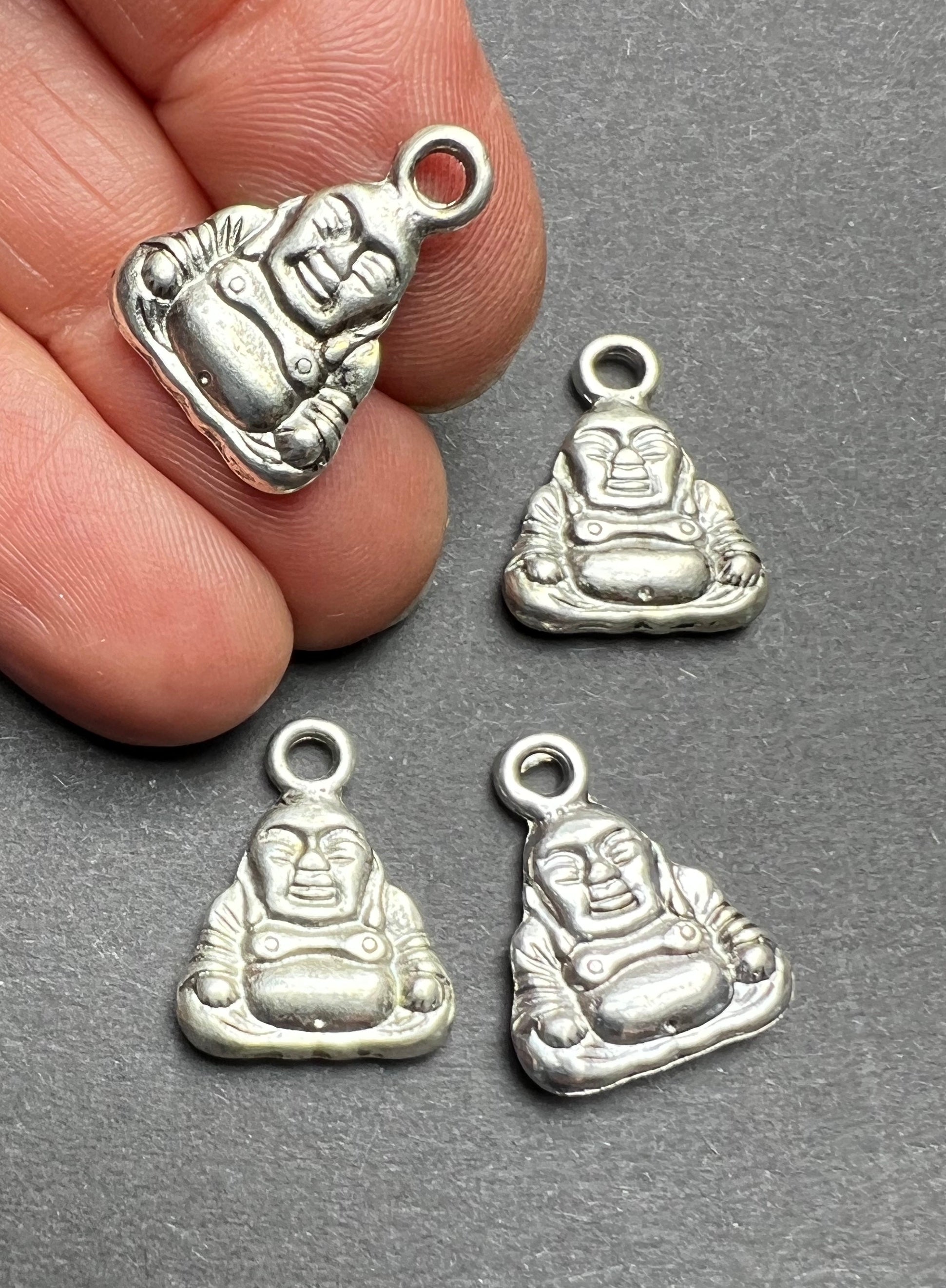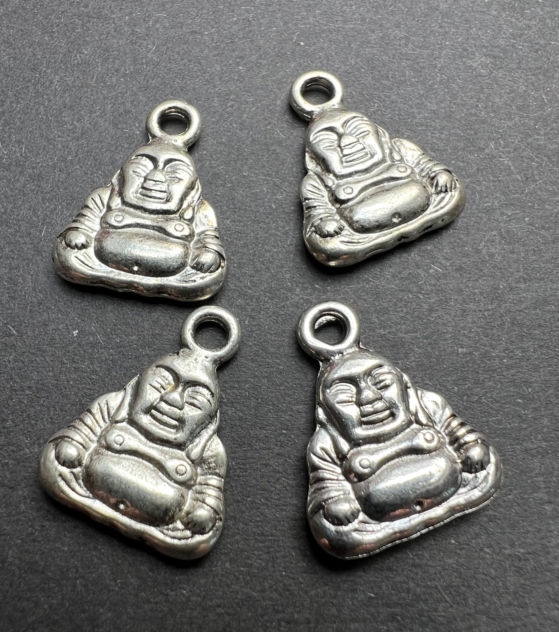 4 Silver Tone Buddha Charms - 3cm tall