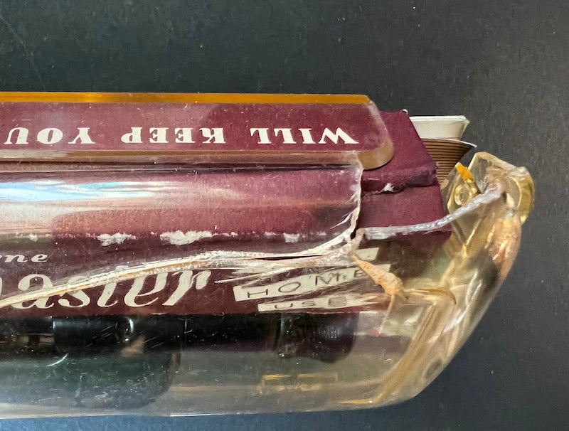 3. In a cracked case with a piece missing from the back
