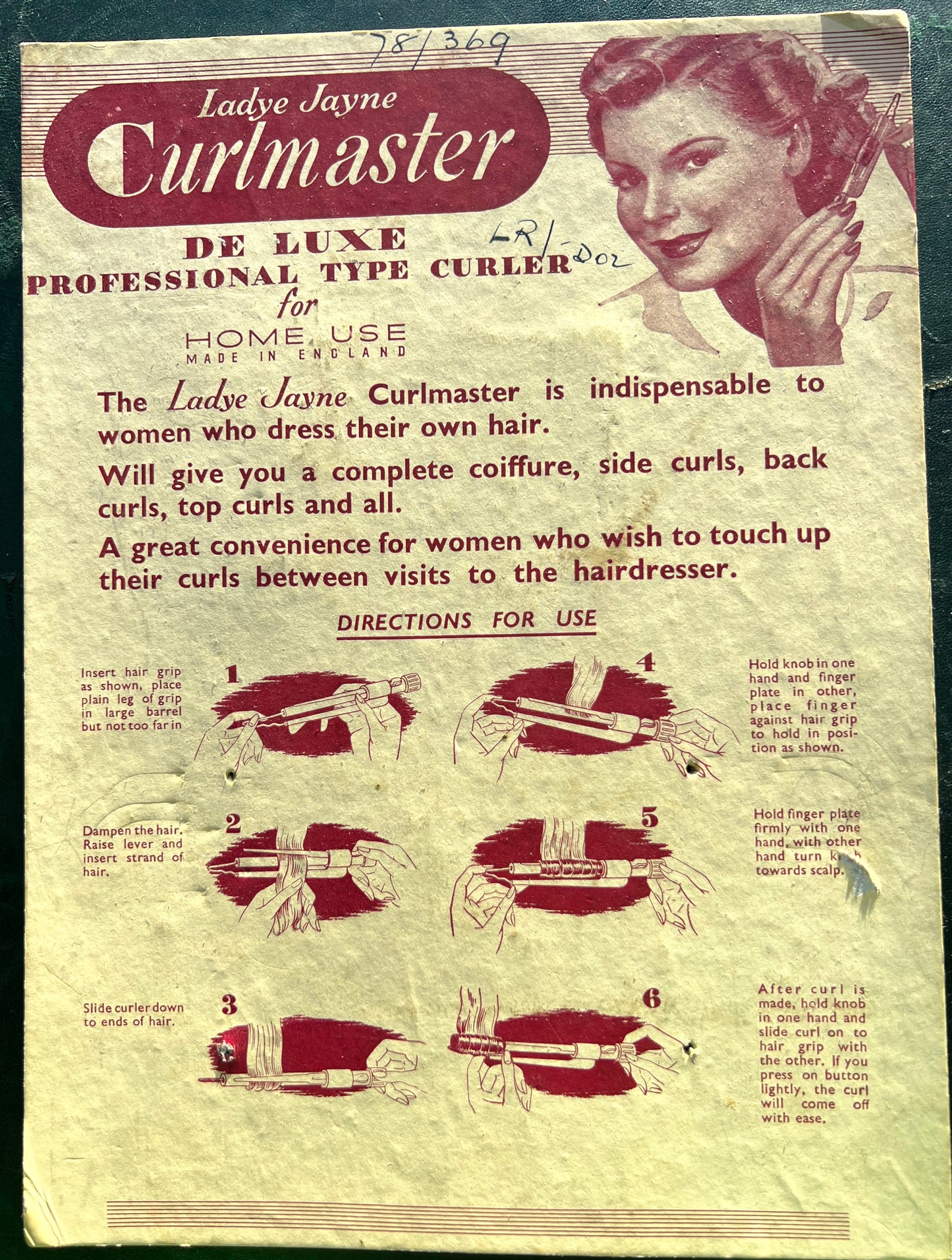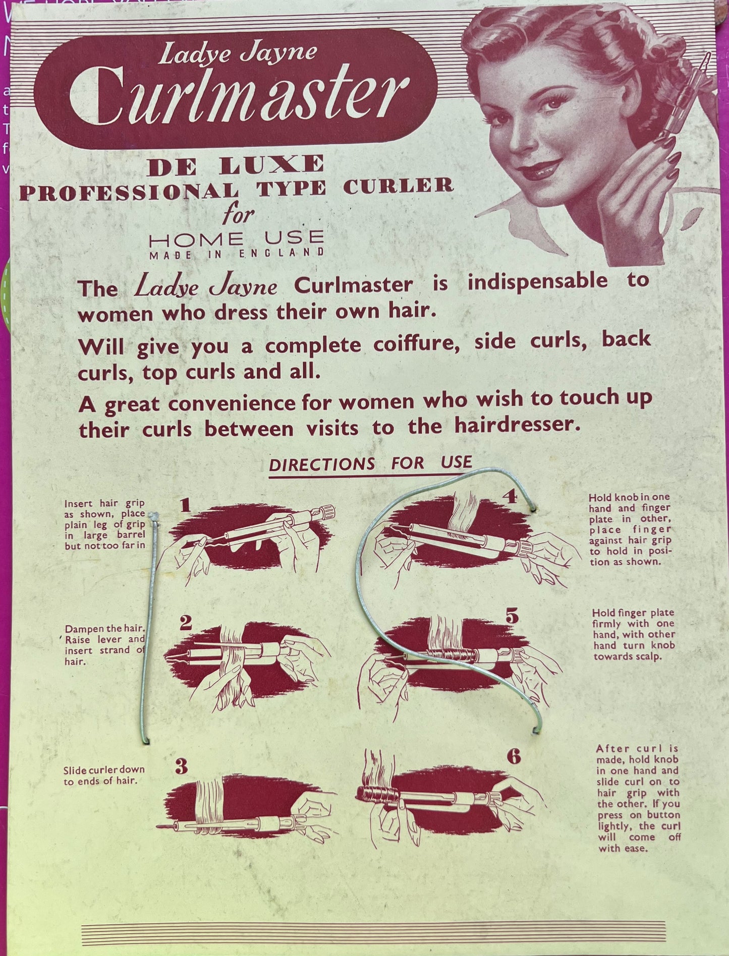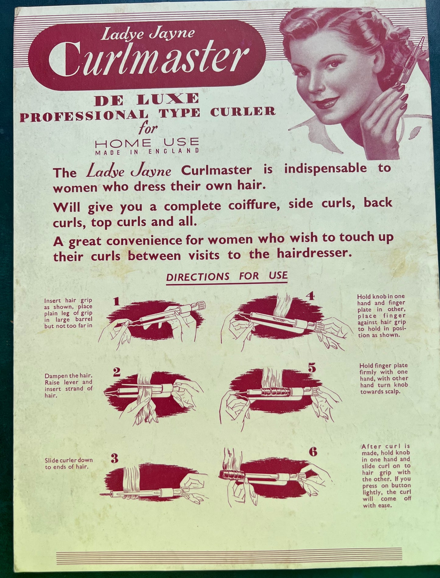 "Lady Jayne Curlmaster for Home Use DE LUXE PROFESSIONAL TYPE CURLER"