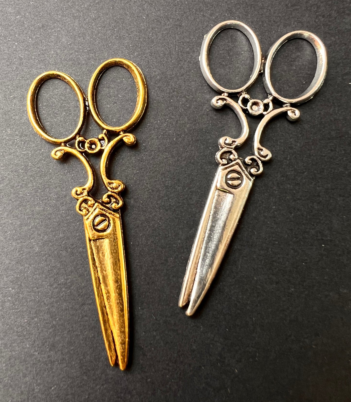 6cm long Gold or Silver Tone Scissors Pendant / Charm