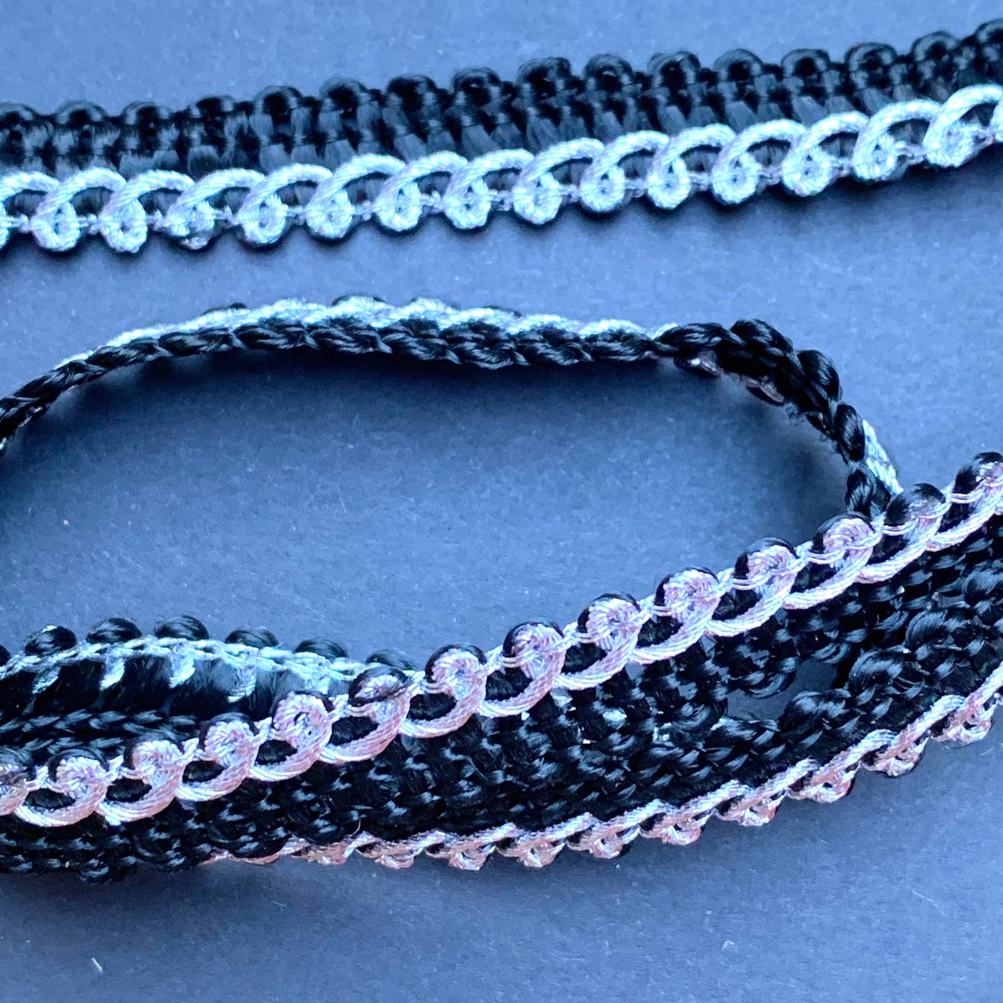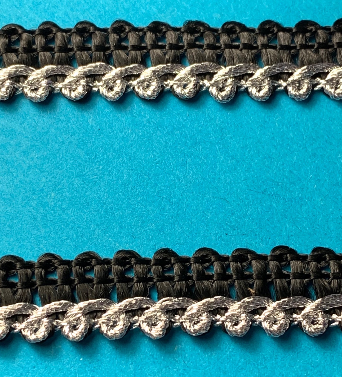 Vintage Sparkly Silver & Black Trim - 1cm wide..Huge Decorating Potential..