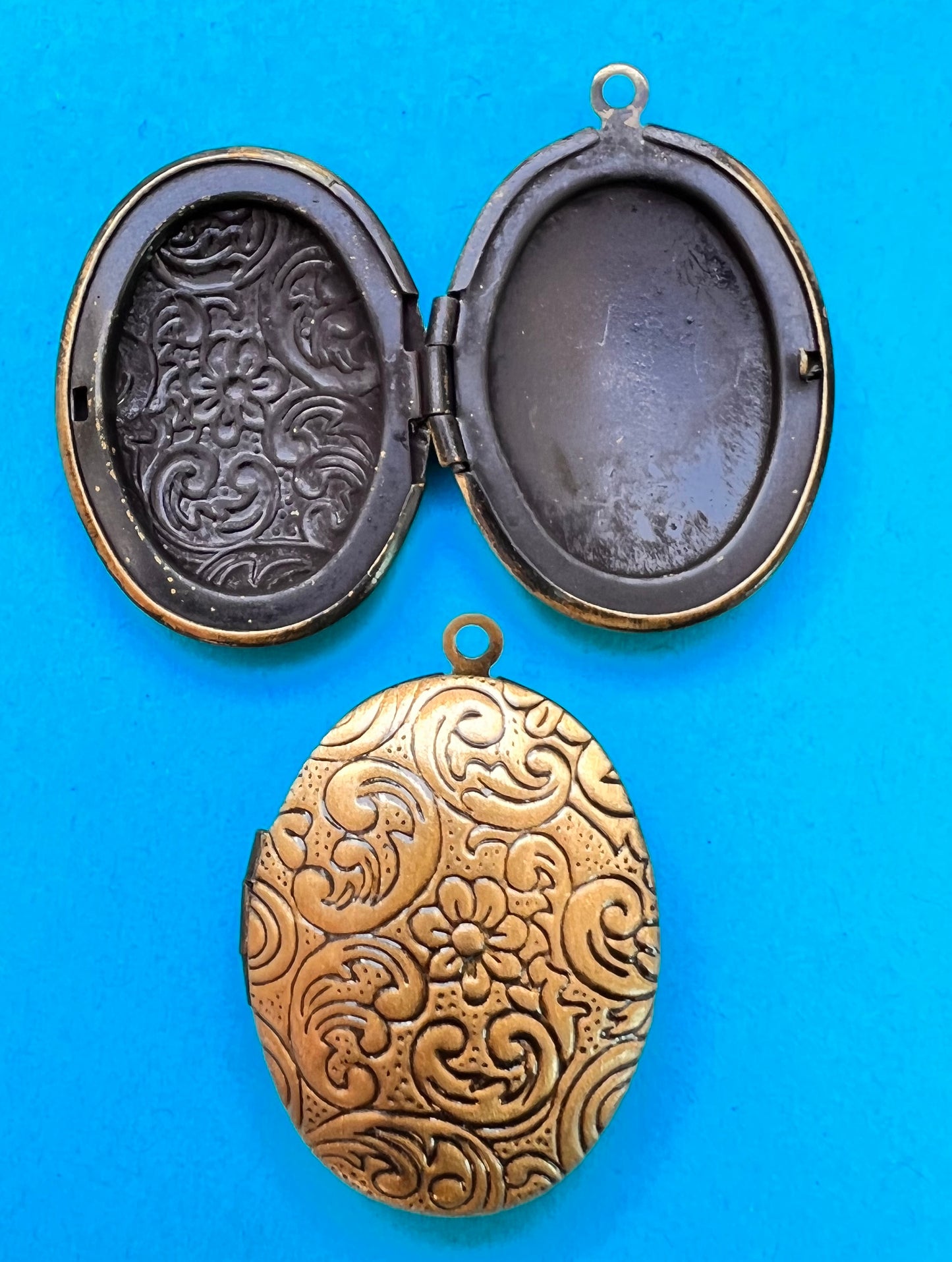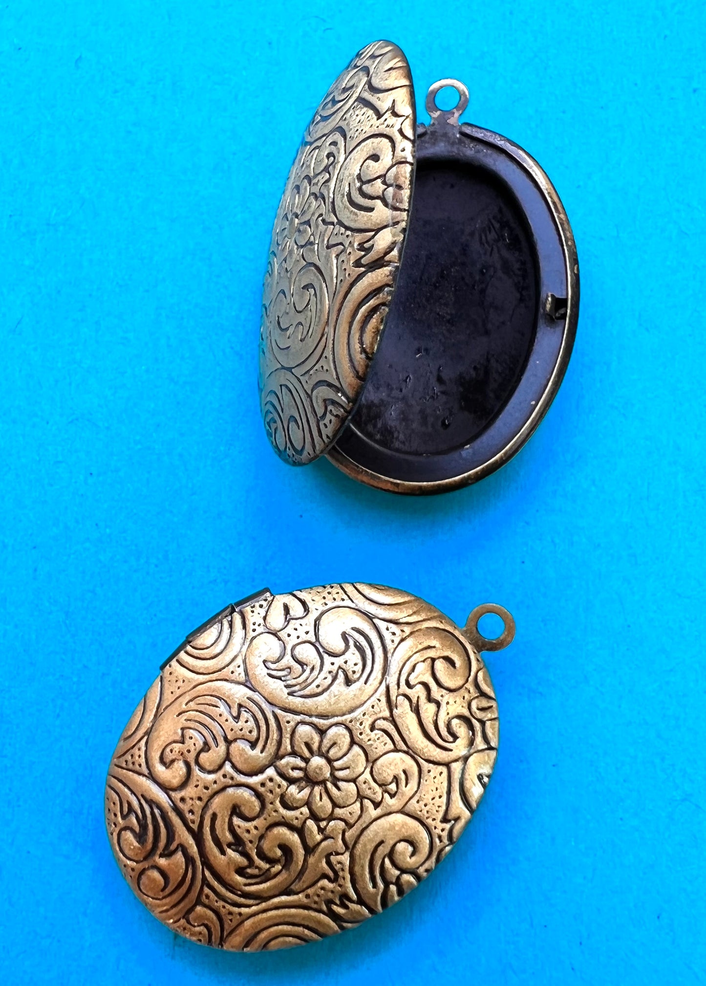 Made of a light bronze tone metal, 3cm tall, opens and closes.