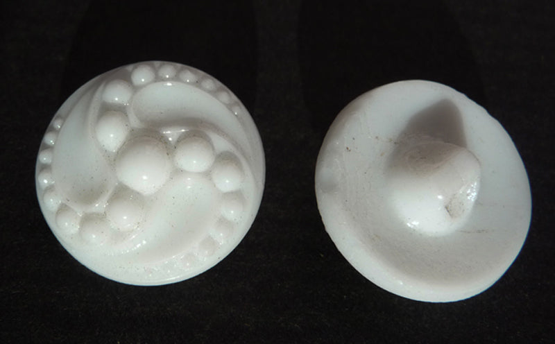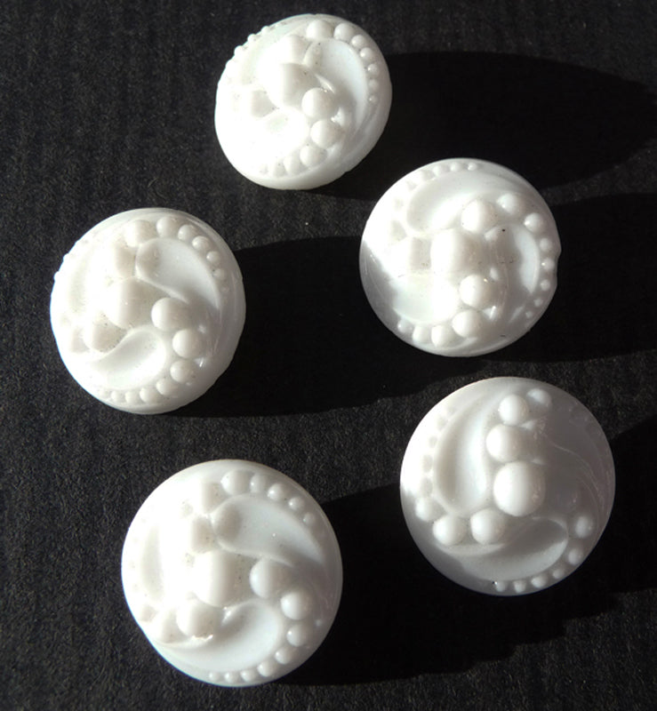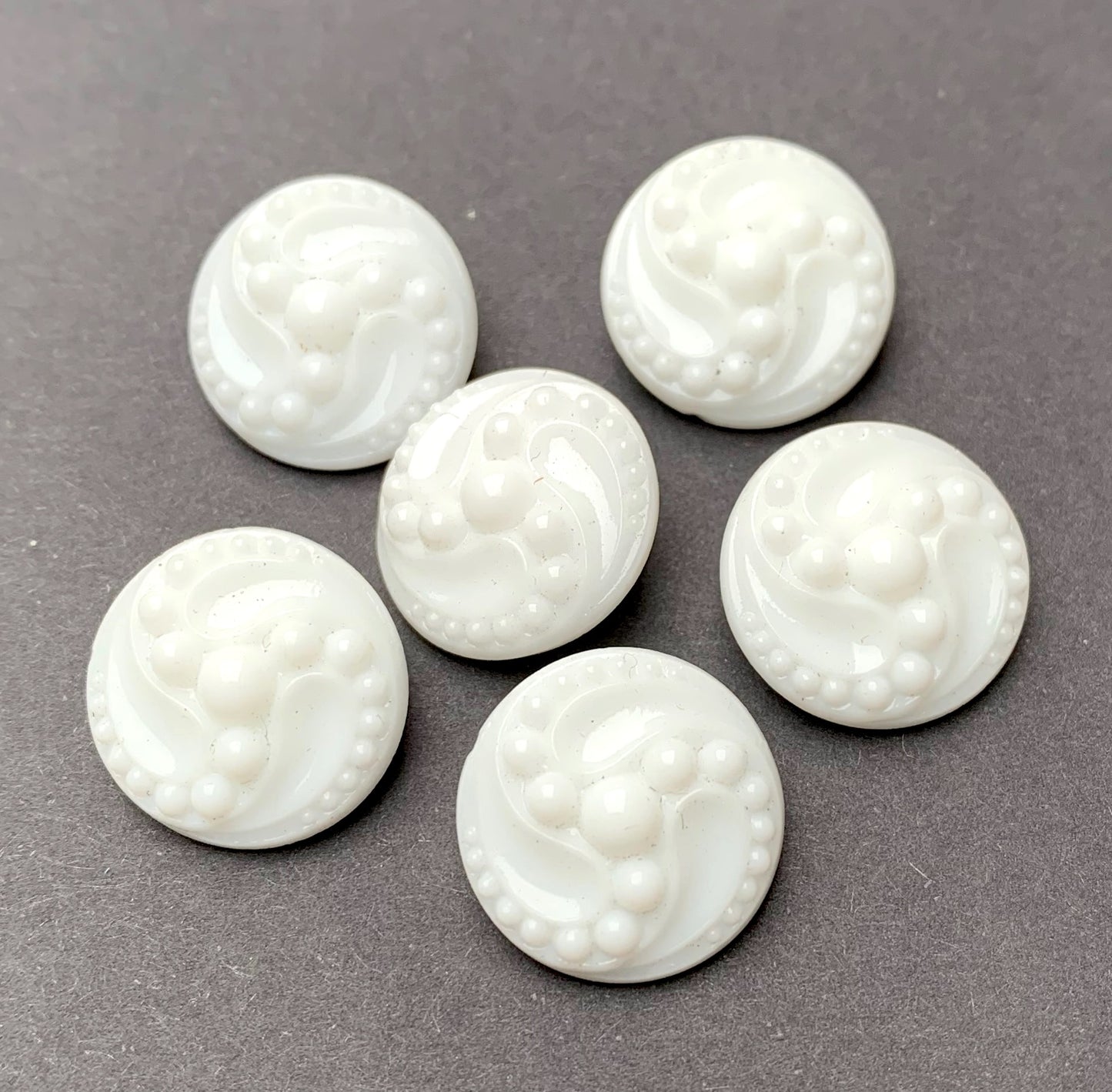 6 Vintage 1920s White Swirly 1.4cm or 1.8cm Glass Buttons