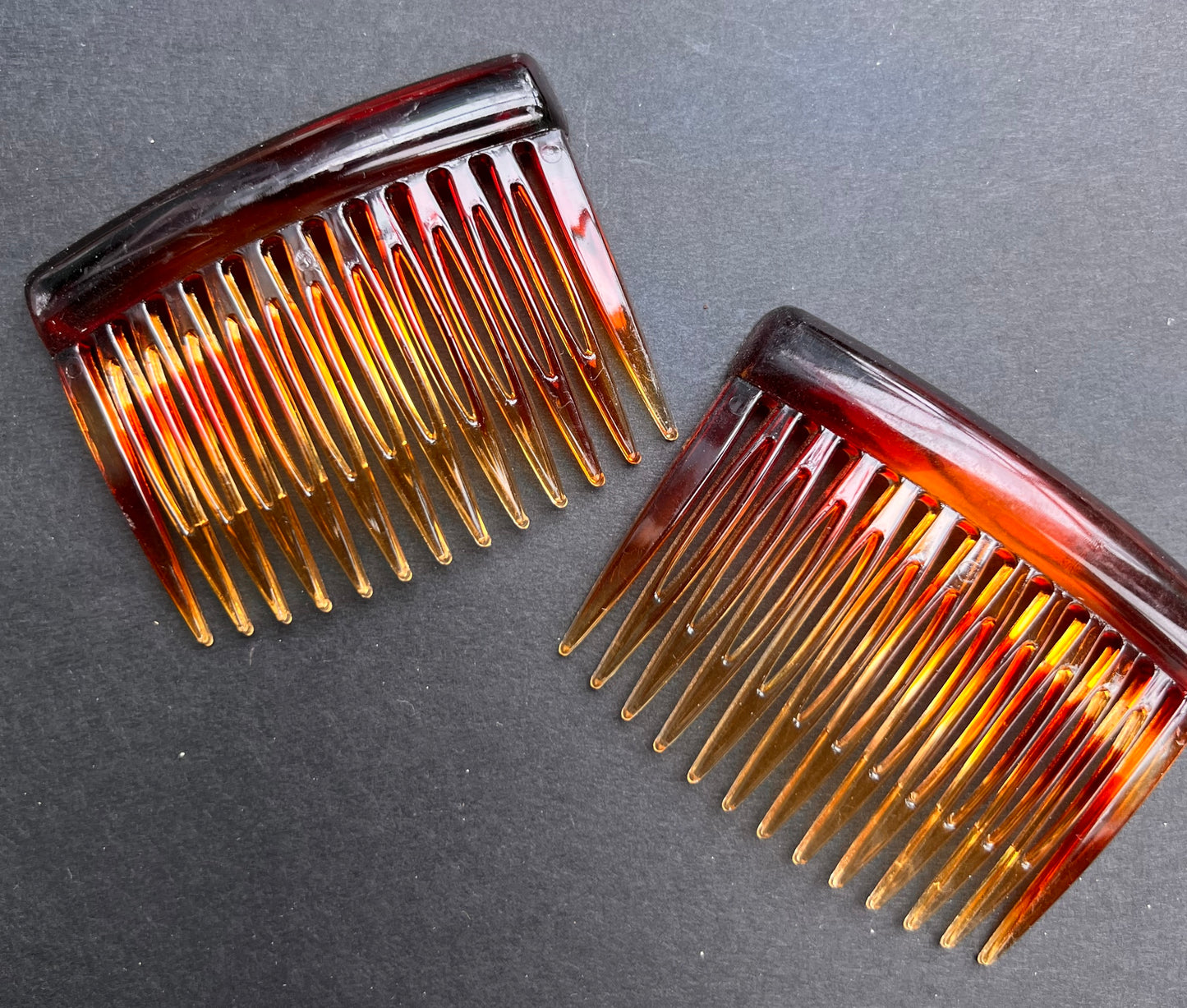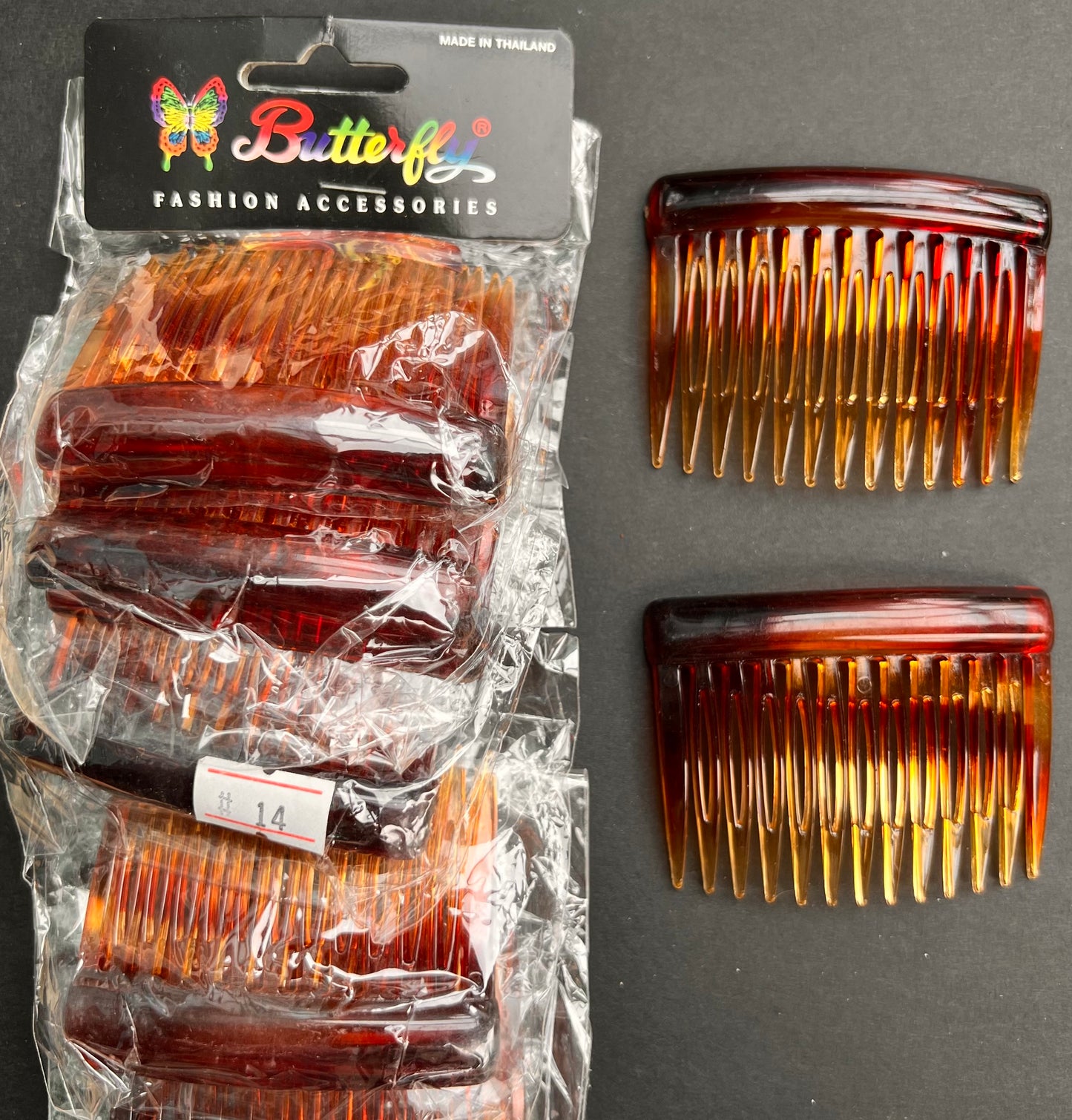 Packet containing 6 pairs of big strong haircombs - from the 1990s.