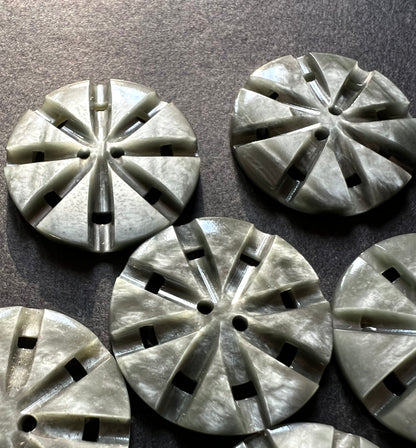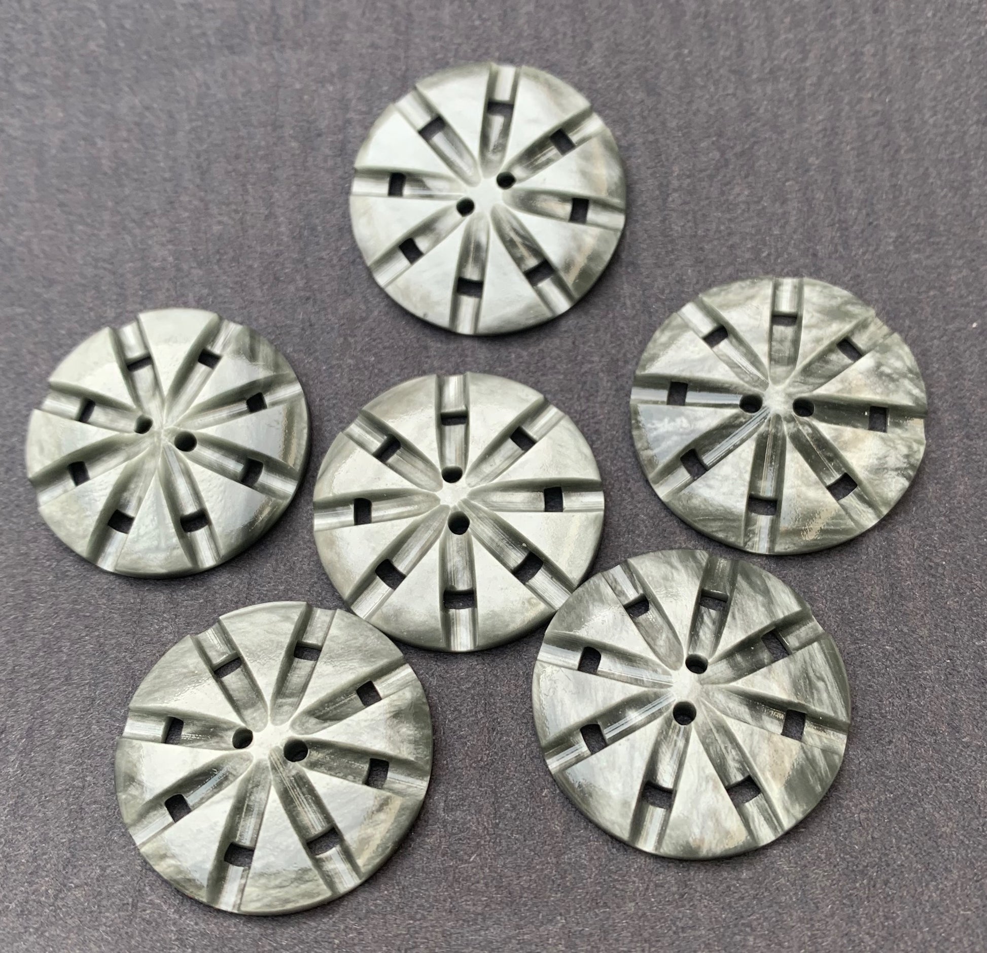 6 Shiny Silver Grey Vintage Lucite Buttons - 2.2cm wide