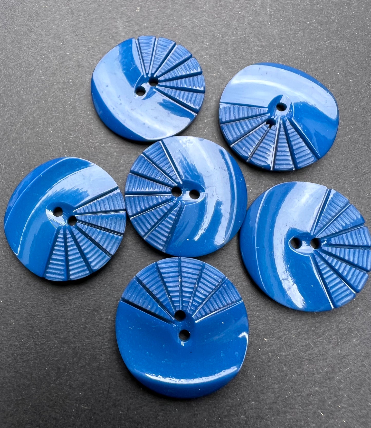 6 Prussian Blue 1930s Moulded and Carved 2.2cm Buttons