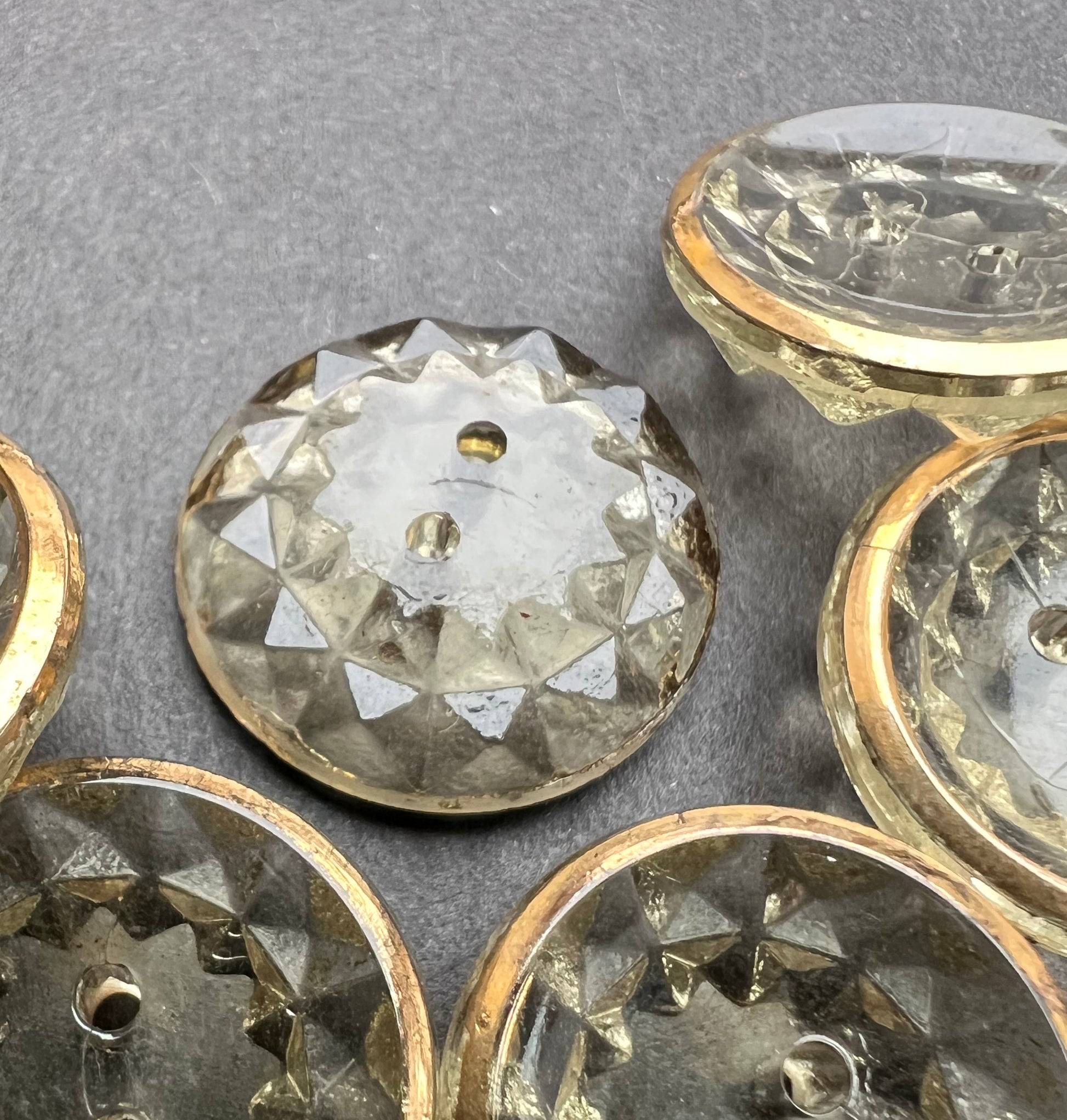 6 Sparkly Gold Rimmed Vintage 1930s French Glass 2cm Buttons