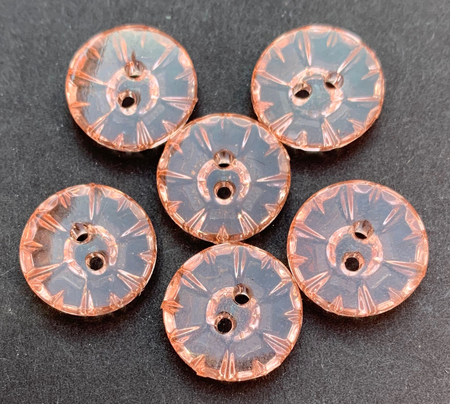 6 Shimmering Boudoir Pink Vintage Glass 1.3cm Buttons