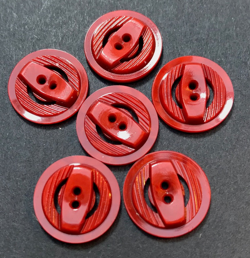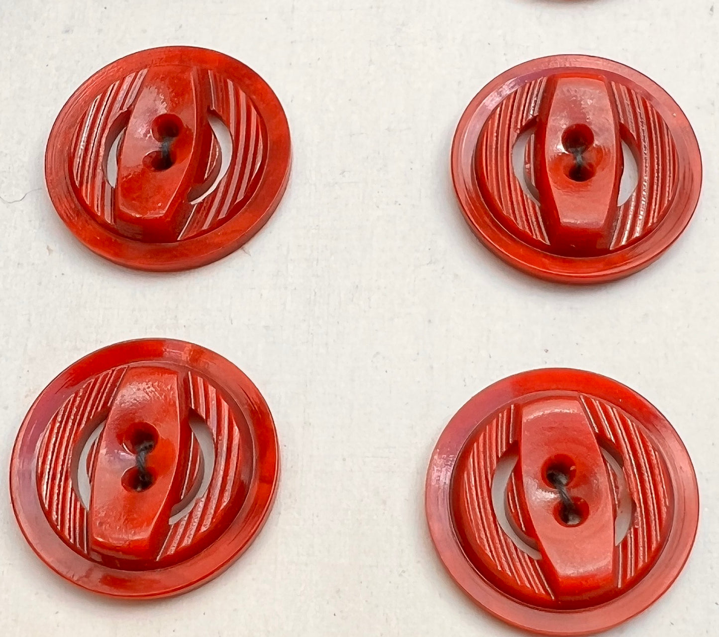 Vintage plastic buttons machine carved into different shapes, levels and surface textures.