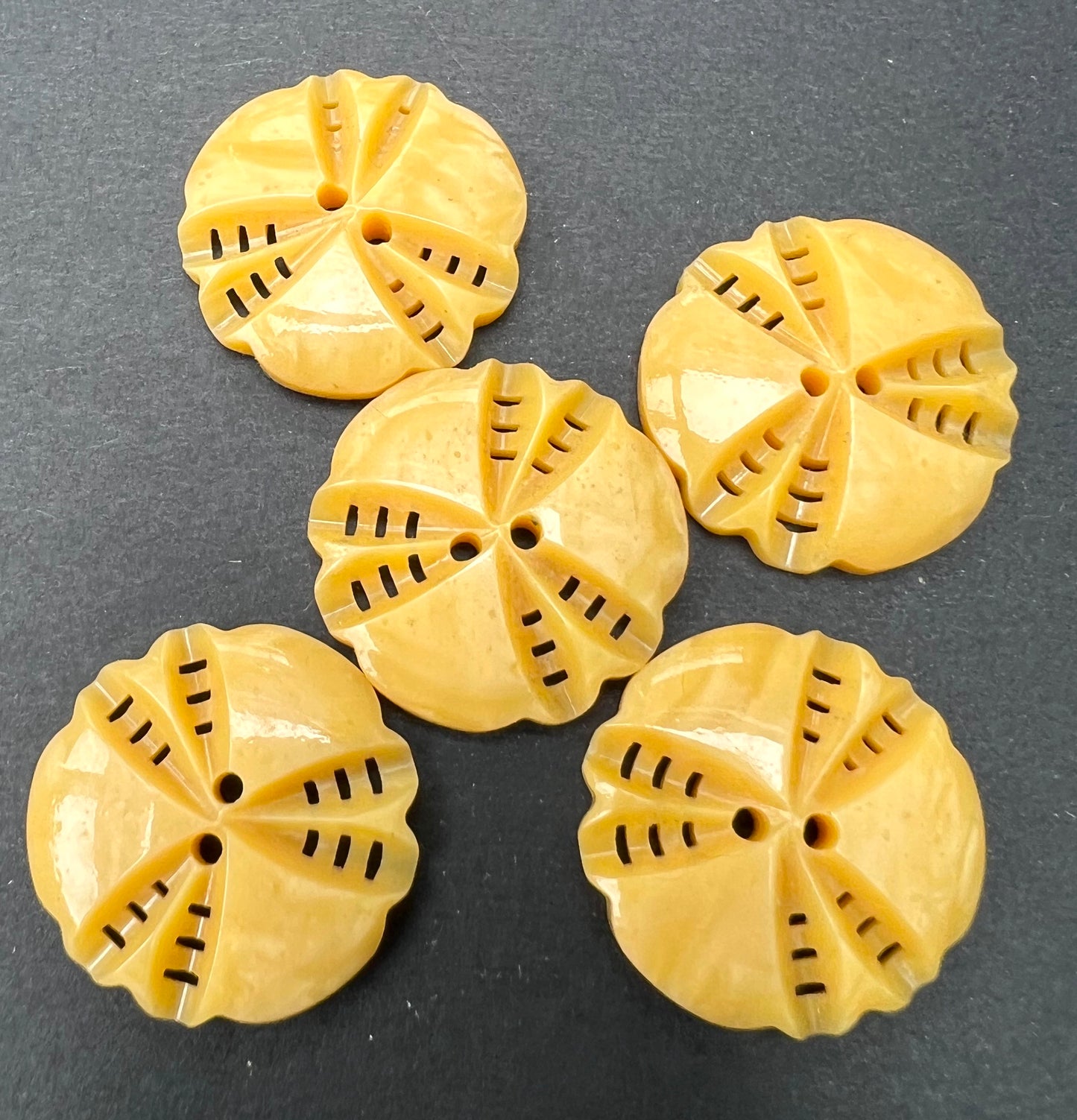 5 or 6 Butterscotch Yellow Vintage 2.2cm Buttons