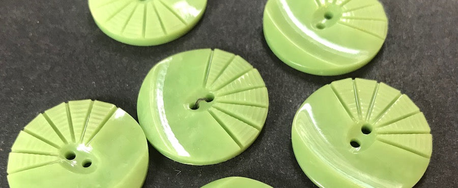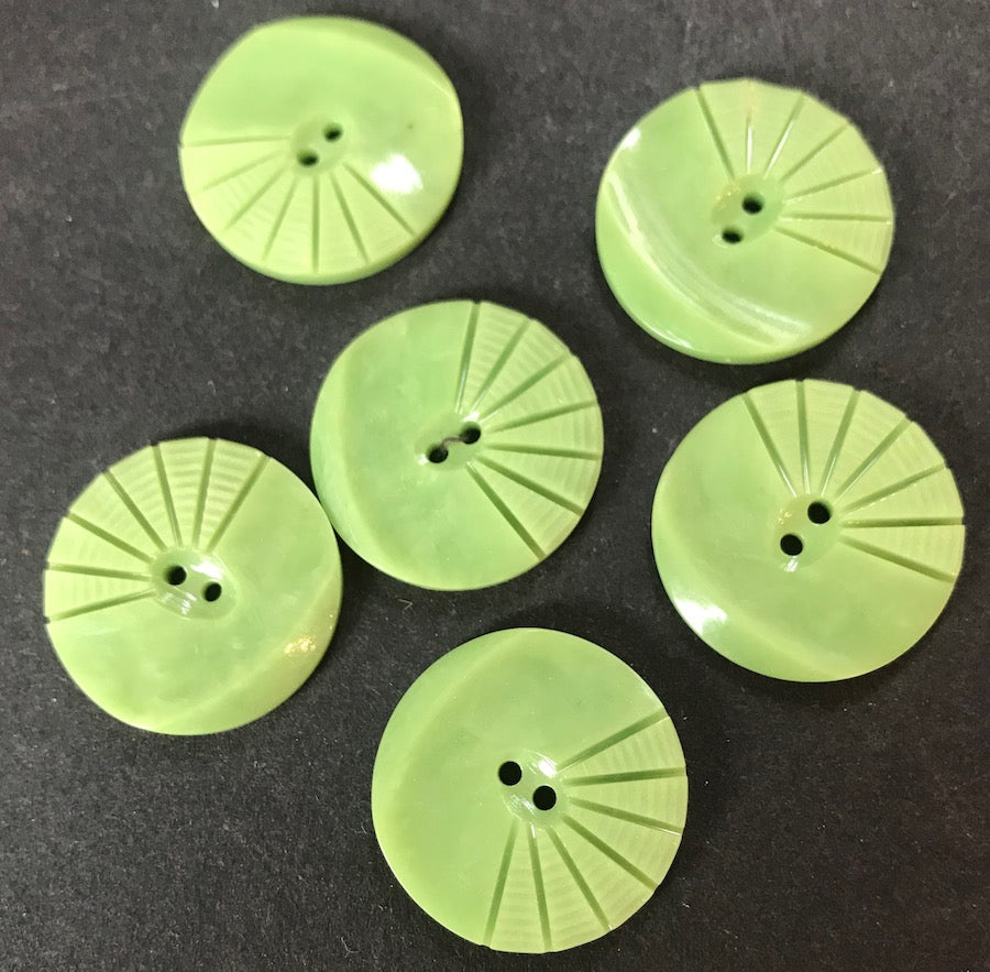 6 Mint Green 1930s Moulded and Carved 2.2cm Buttons