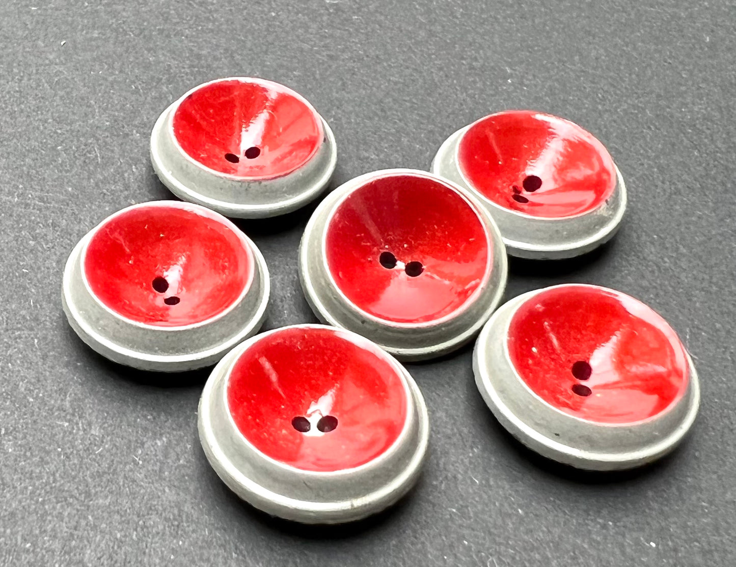 6 Striking 1960s Italian Light Grey and Dark Red Vintage 1.5cm Buttons