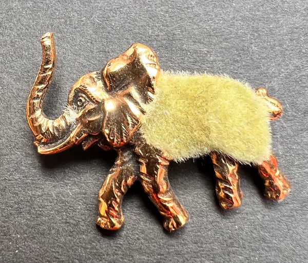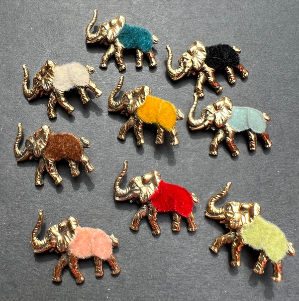 Jolly Vintage Colourful Flocked Elephant Brooches