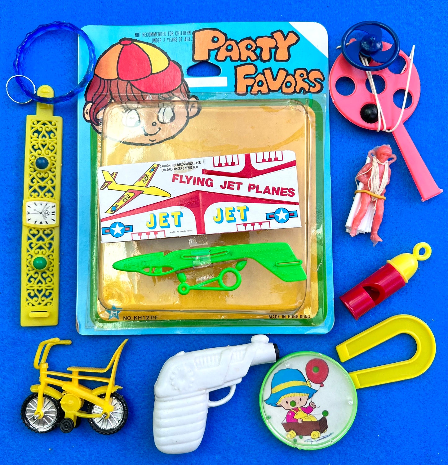 1970s Party Favors Set. 10 Toys including Chopper ! Made in Hong Kong
