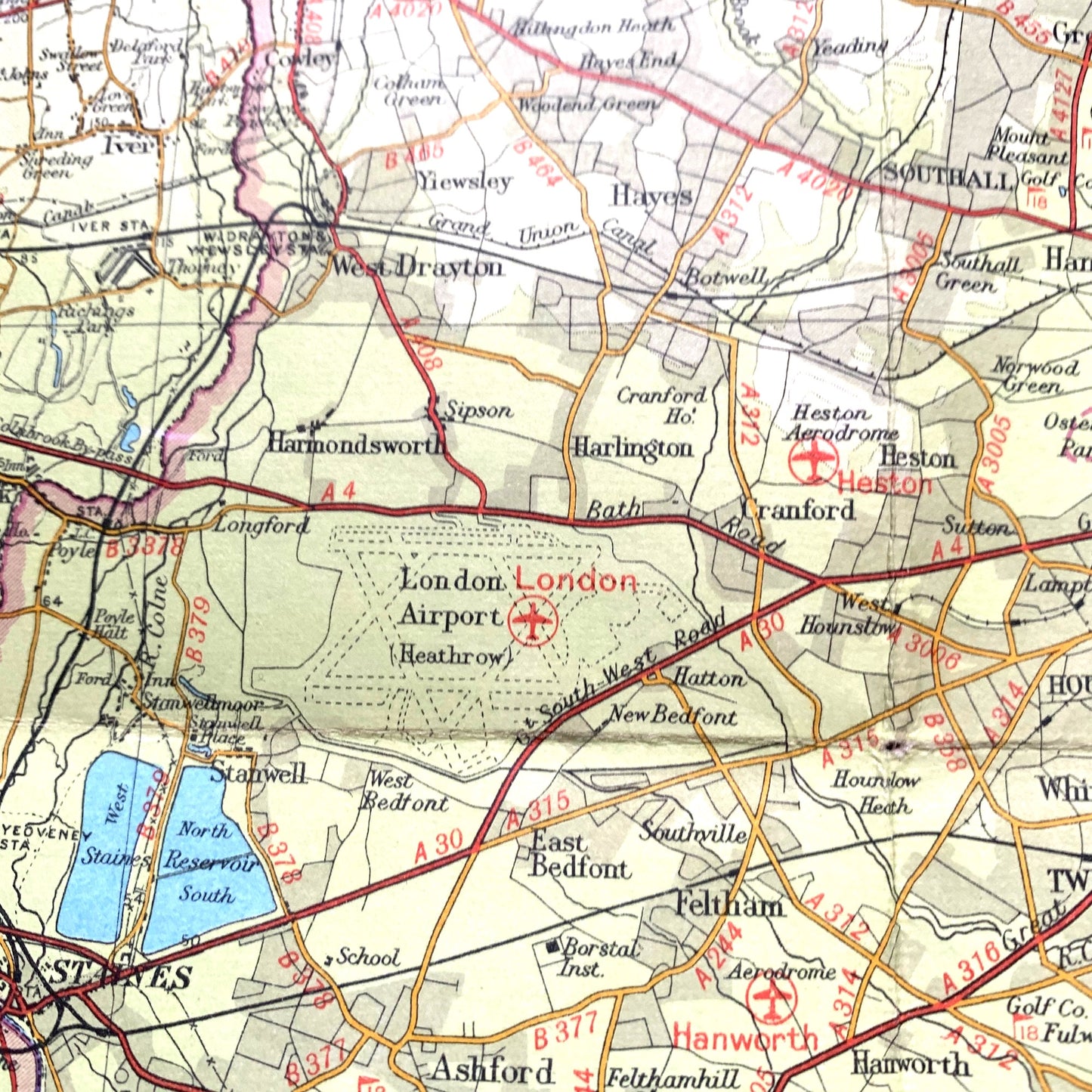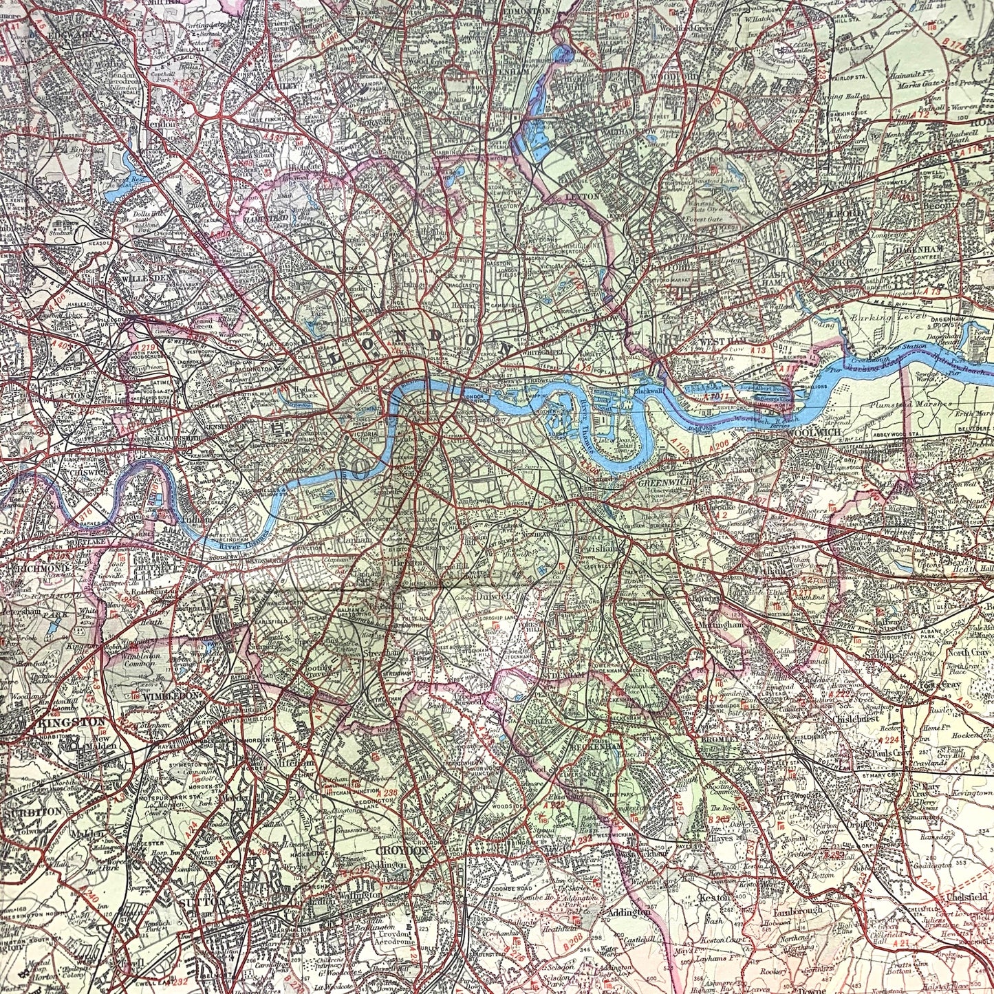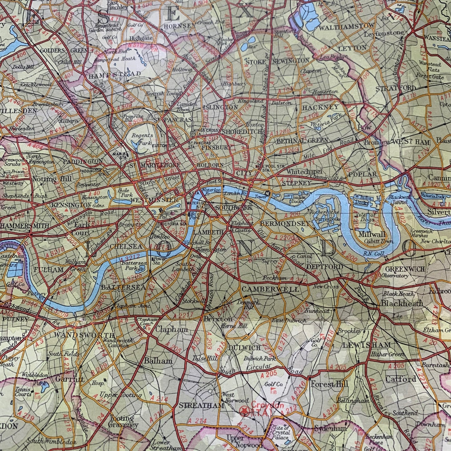 The map covers from, in the West Reading and Basingstoke, to the North Beaconsfield, High Wycombe, Chingford and a very rural Mill Hill.