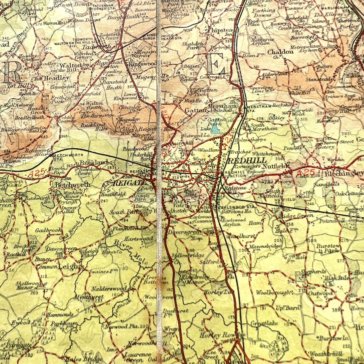 Early 1900s Map of Surrey Bartholomews /AA