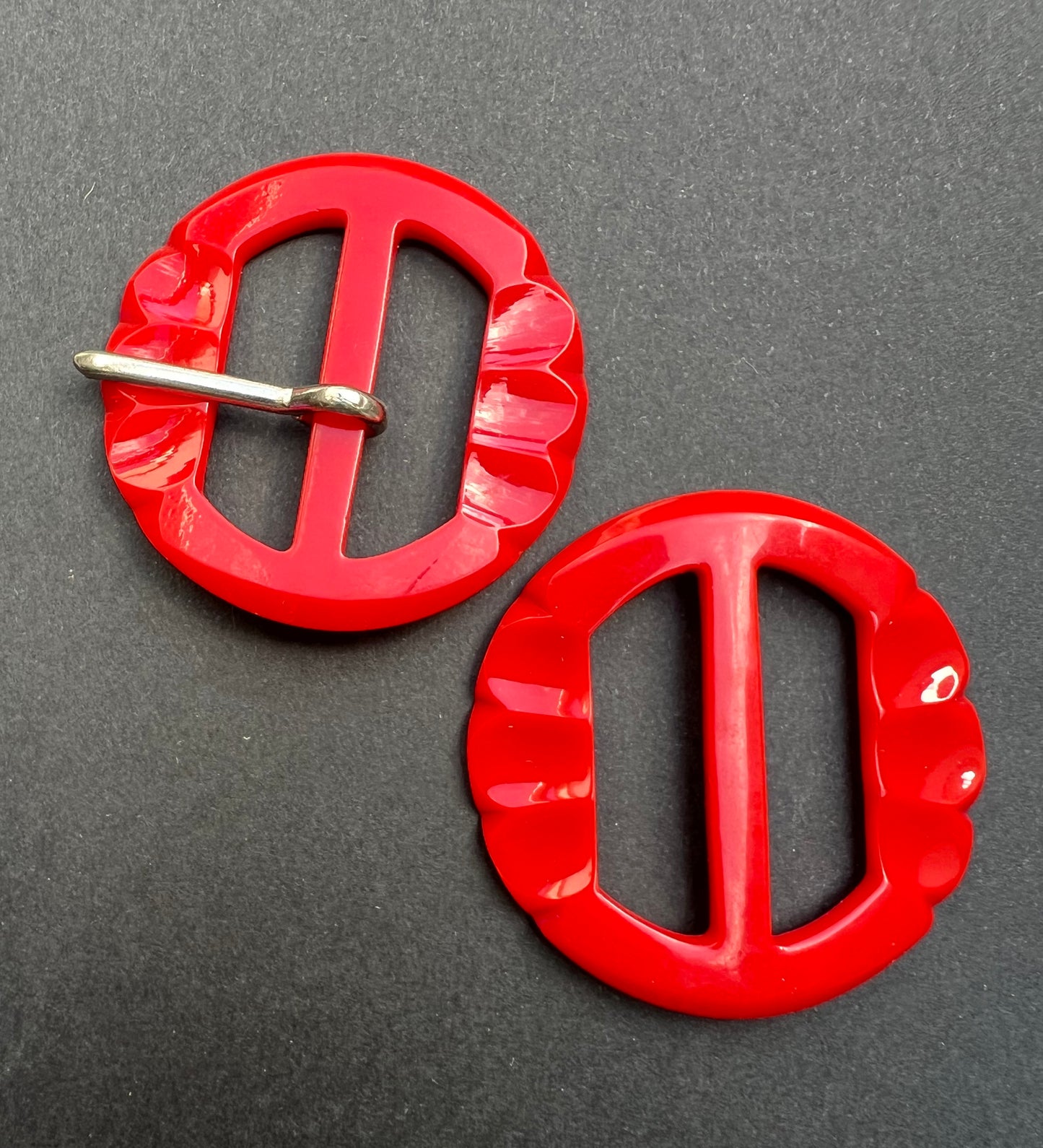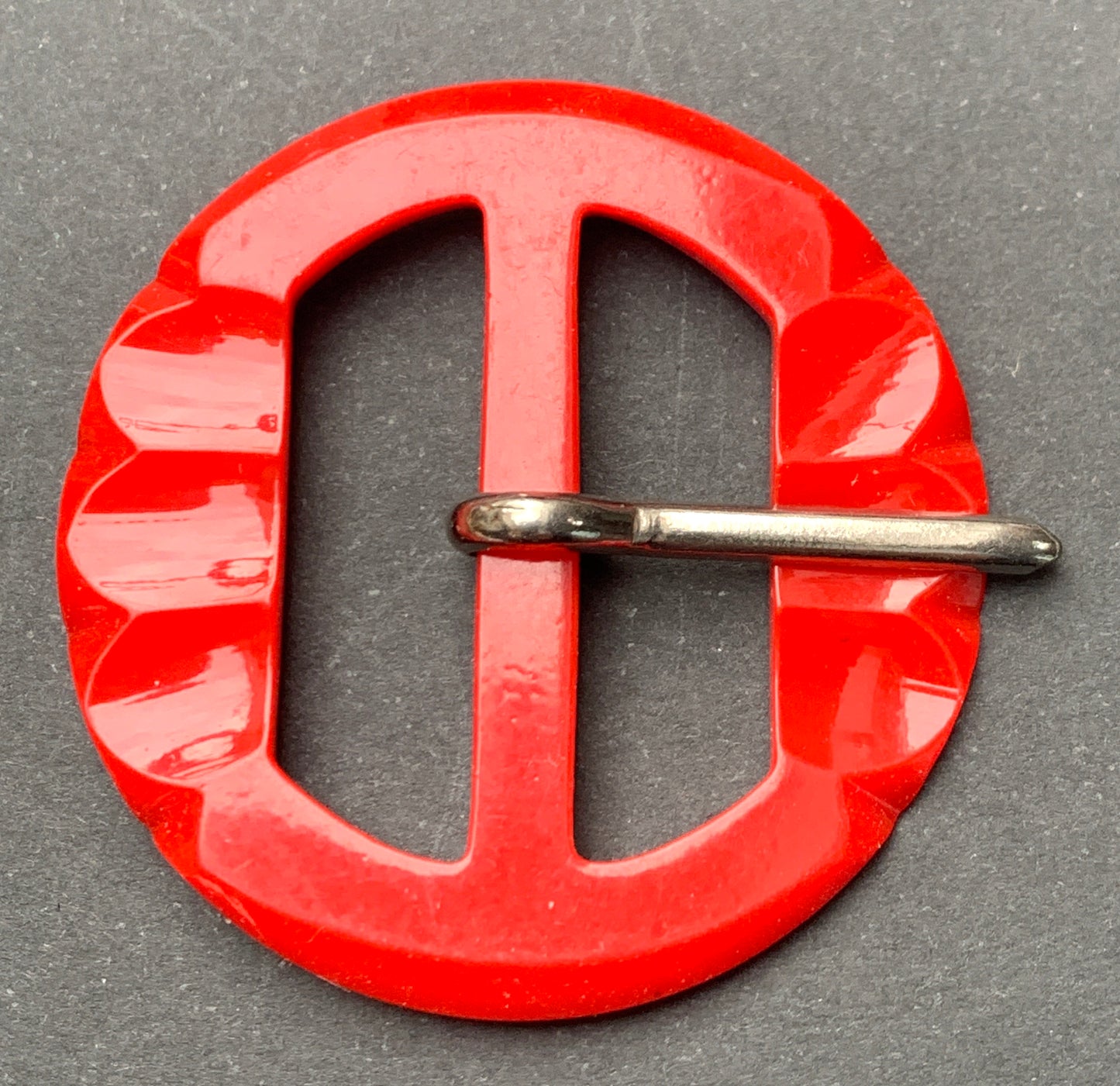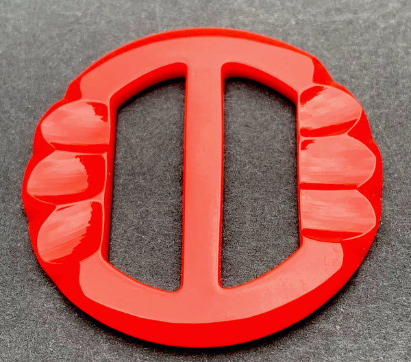 Marvellously Tactile Bright Red 1940s Casein 4cm Buckle - Unused Old Warehouse find..