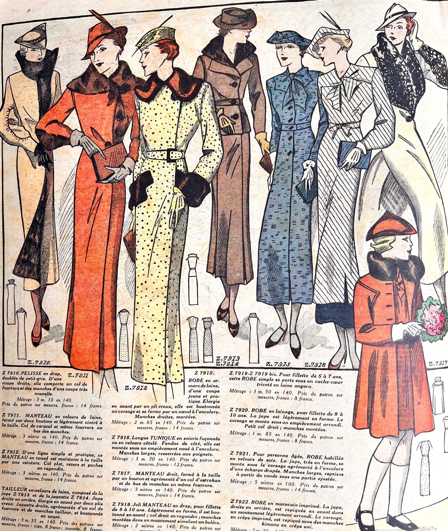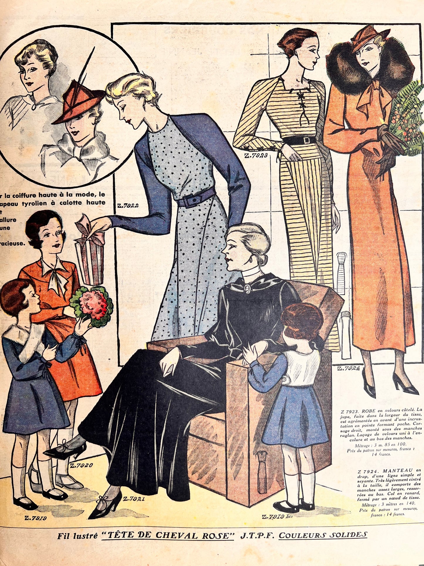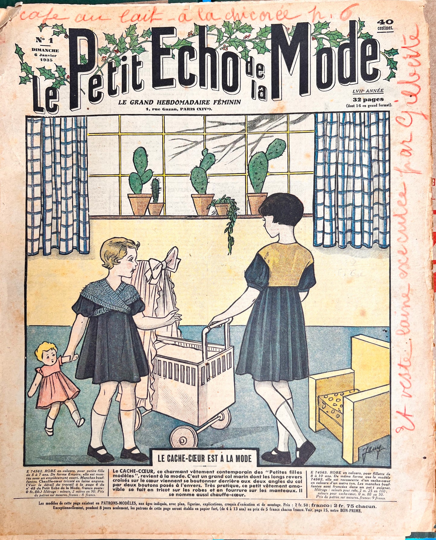 The most fashionable outfits for children and women in the 6th January 1935 issue of the French Fashion Paper Le Petit Echo de la Mode.