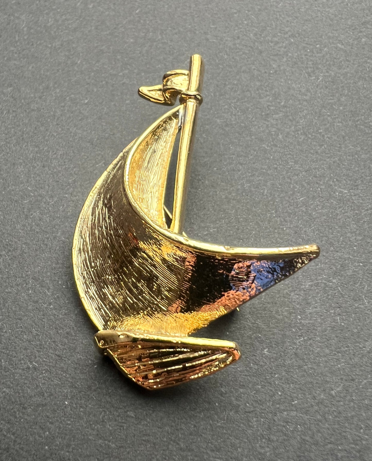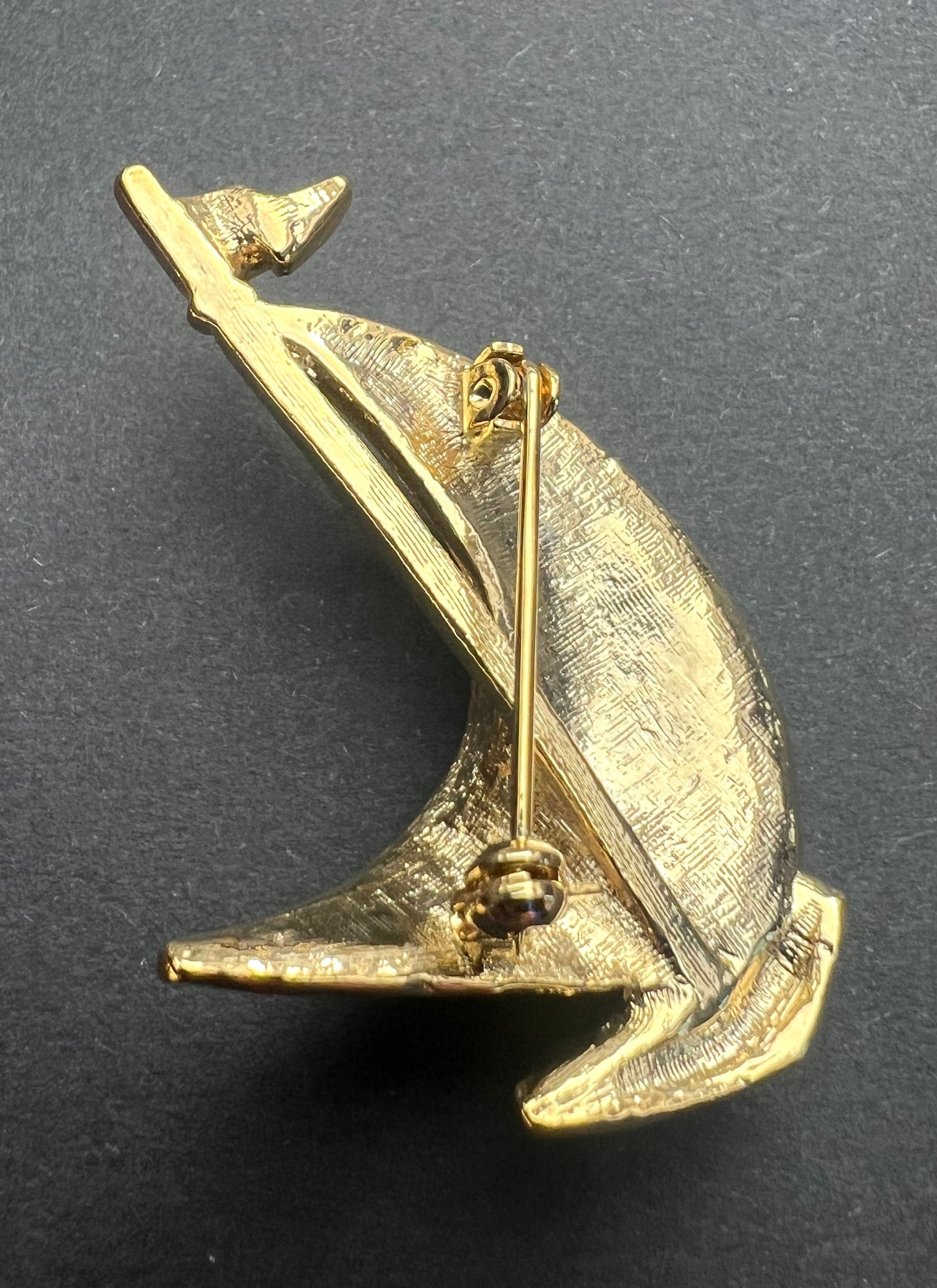 This very shiny vintage gold tone brooch measures 5.5cm by 4cm and has a