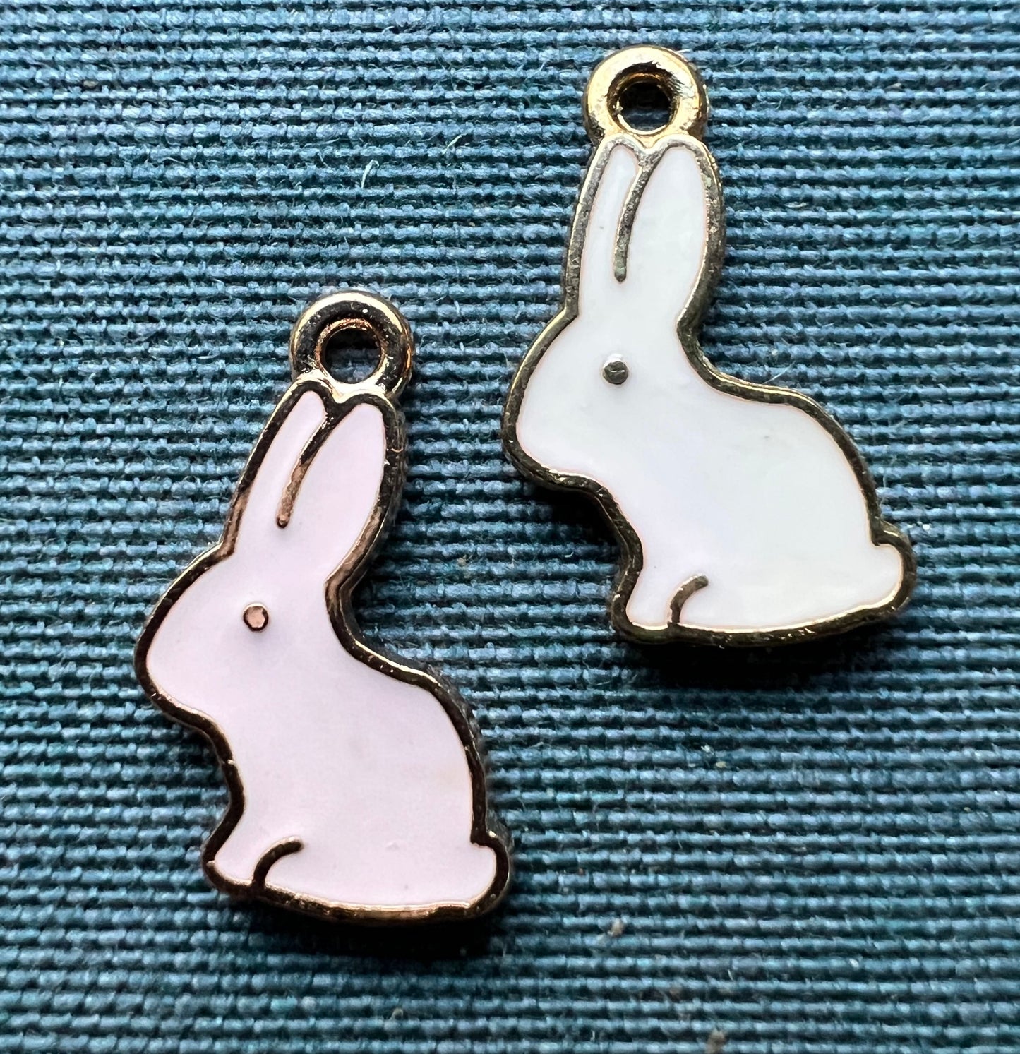 Little 1.5cm Pink or White Enamel Rabbit Charm / Pendant